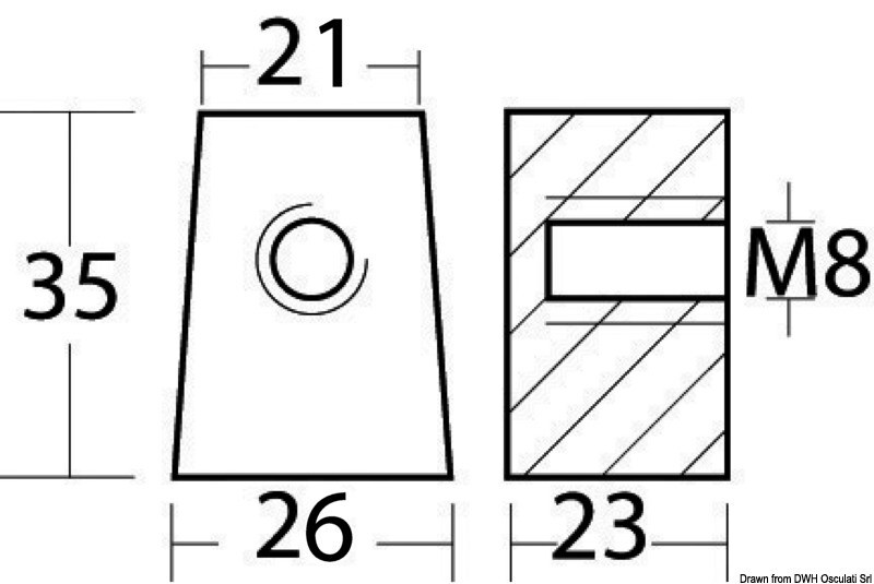 Anoda magnesiová 35x23mm pro Yamaha 30/60HP, díra závit M8