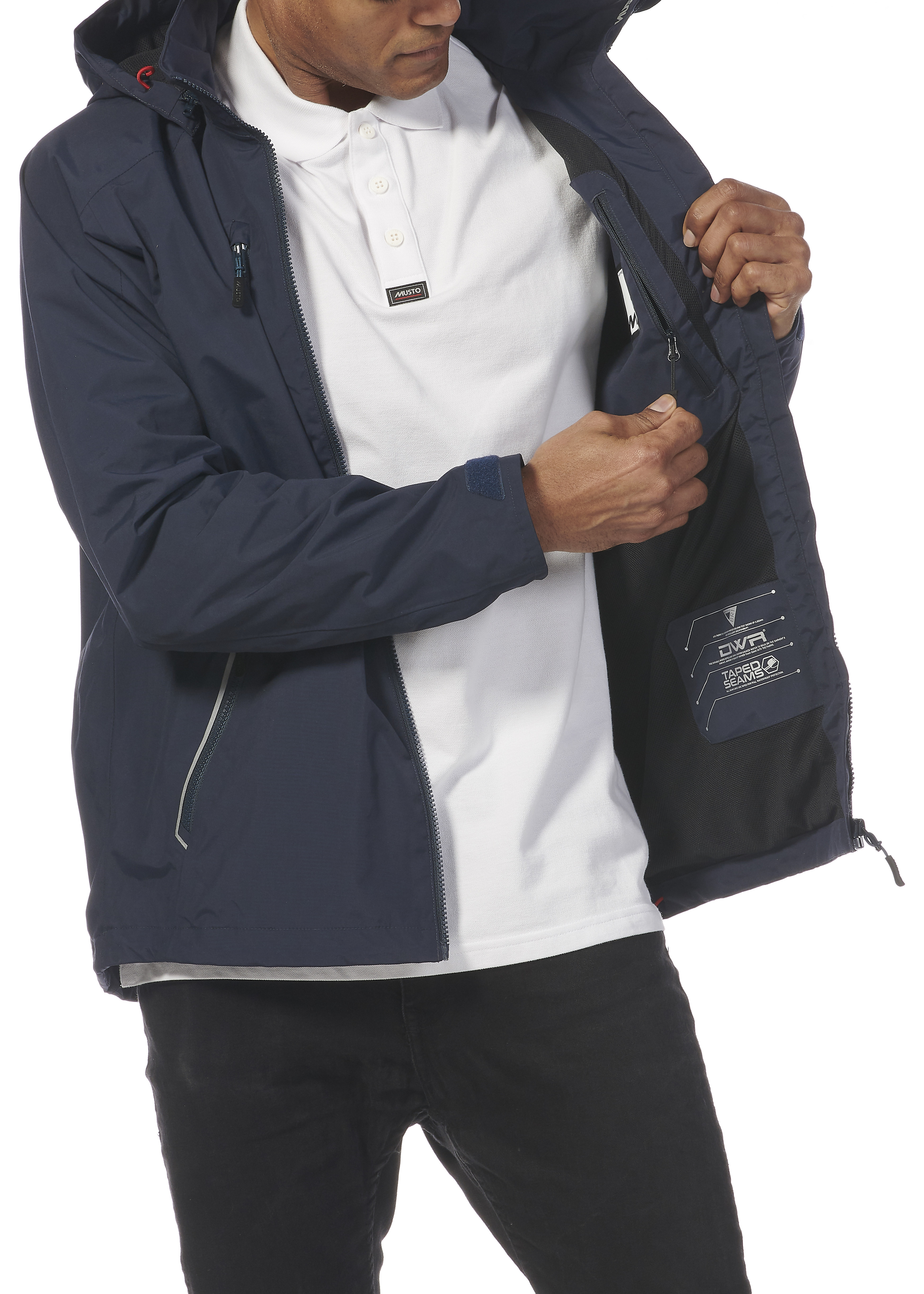 - Dvouvrstvá prodyšná tkanina odolná proti dešti podle přísného standardu Musto BR1.