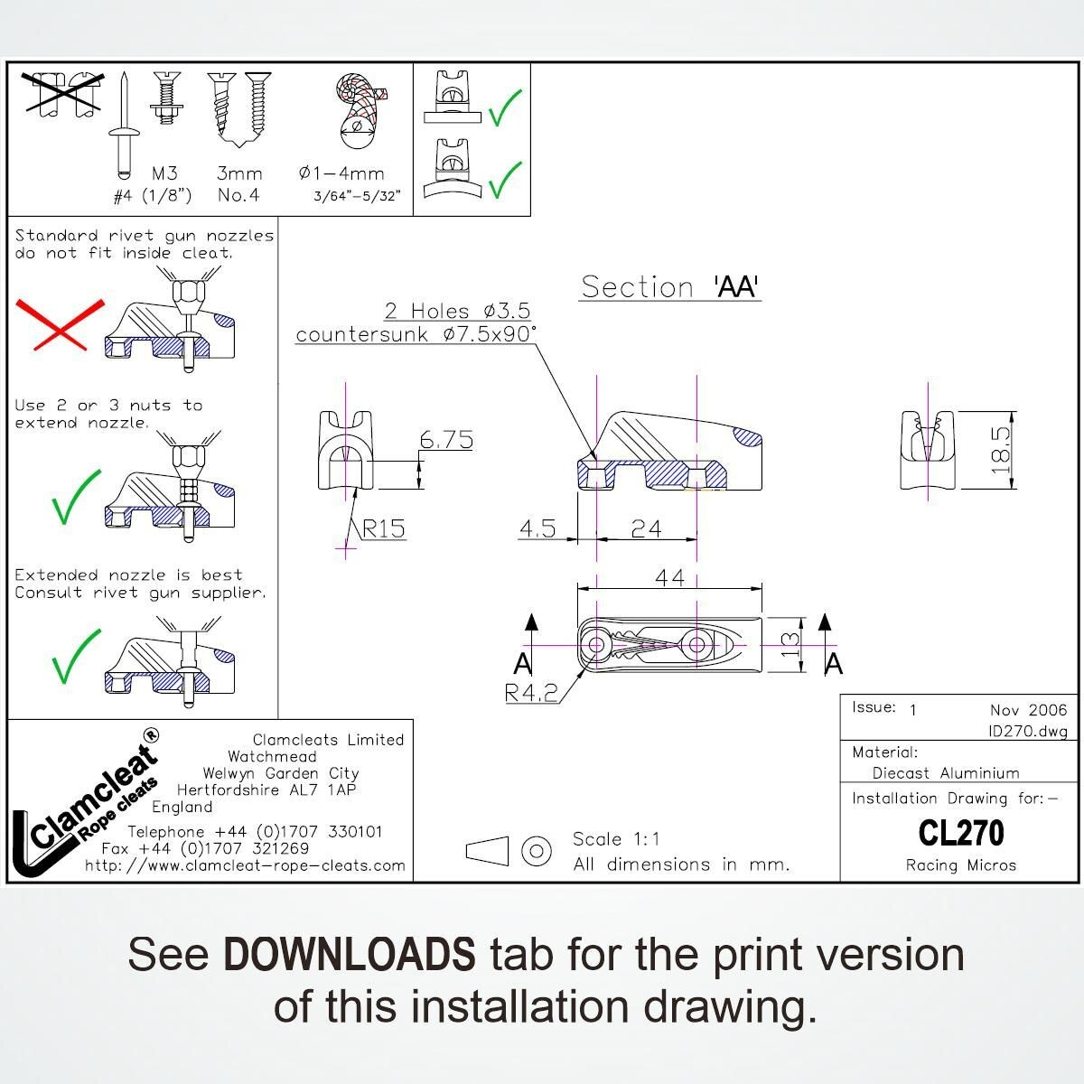 CL270 Zásek na lano 1-4mm
