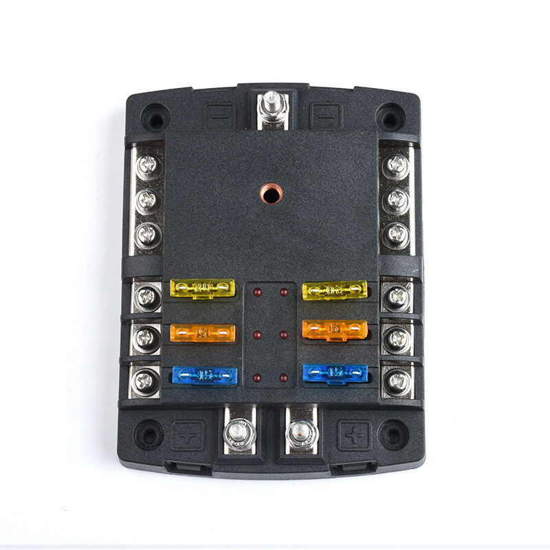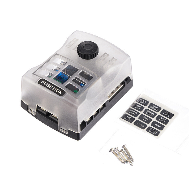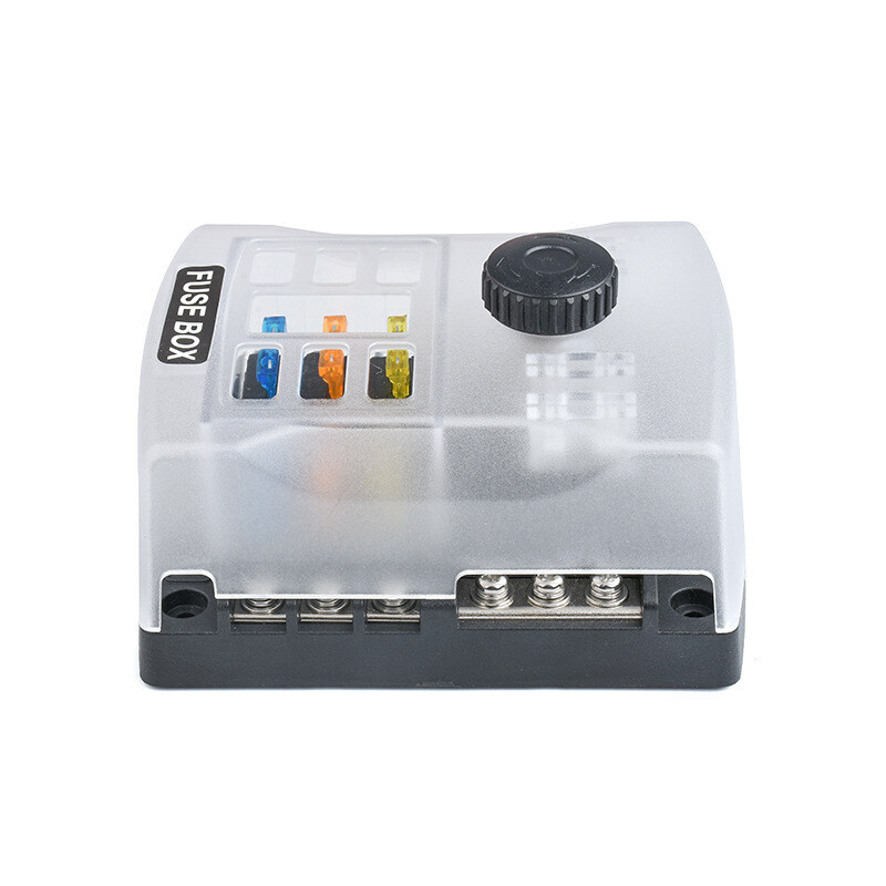 Dva napájecí vstupy umožňují napájet příslušenství ze dvou samostatných obvodů.Červená LED signalizuje, že je pojistka poškozená, kontrola a výměna přepálené pojistky je bezpečná a snadná.