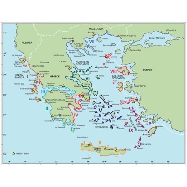Nové aktualizované anglické vydání řeckého průvodce. Obsahuje iónské a egejské pobřeží, řecké ostrovy Rodos a Kréta a 450 přístavů.