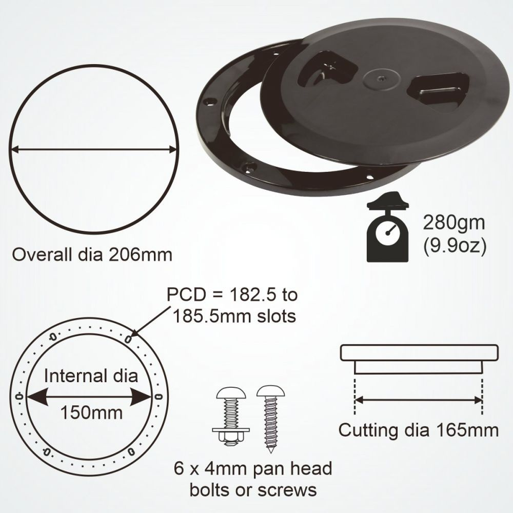 Inspekční víko Clamcleat Access Cover 206mm, s drážkou pro kliku k vičně, bílé