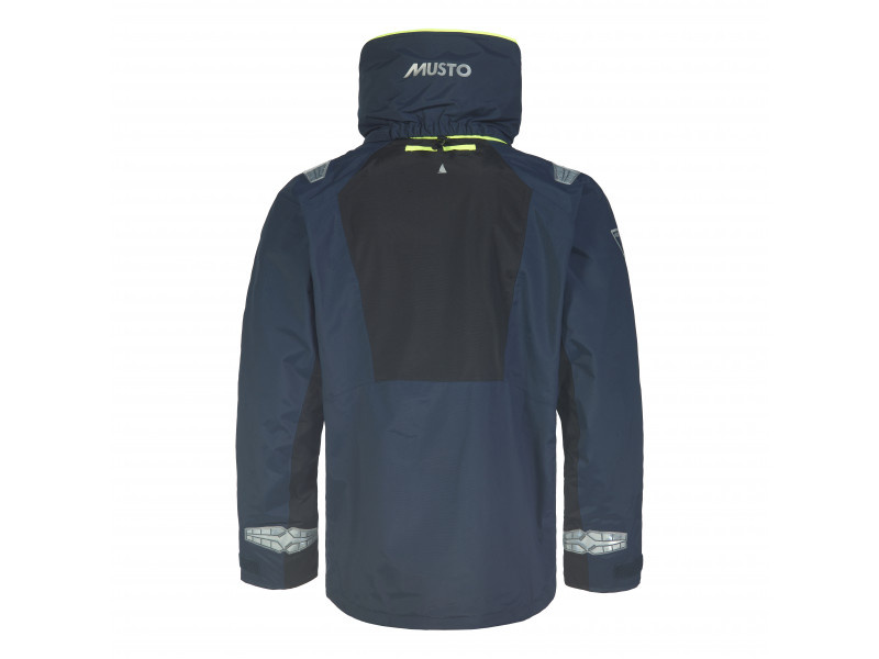 Díky nové tvrdé a odolné tkanině MUSTO BR2 Performance, která nabízí nejen vodotěsnou ochranu 30k/15k. Zbrusu nová odolná povrchová úprava DWR, vyvinutá s použitím chemie bez PFC, s mnohem vyšší odolností proti oděru za mokra. Díky nové povrchové úpravě DWR tkanina zůstane déle suchá. S designem přiklánějícím se k ikonickým modelů MUSTO HPX, jako je nový chránič proti postřiku a inovovaná konstrukce límce a kapuce, je jachtařská bunda MUSTO BR2 Offshore Jacket 2.0 voděodolnější a prodyšnější a poskytuje výjimečnou ochranu na moři, aniž by přidávala váhu a objem nebo slevovala z pohodlí.