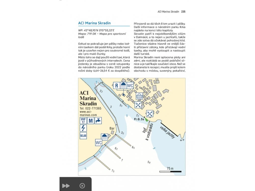 Součástí popisu jsou nejen nautické a jachtařské informace, ale také informace o památkách a zajímavých místech, které můžete na břehu najít.