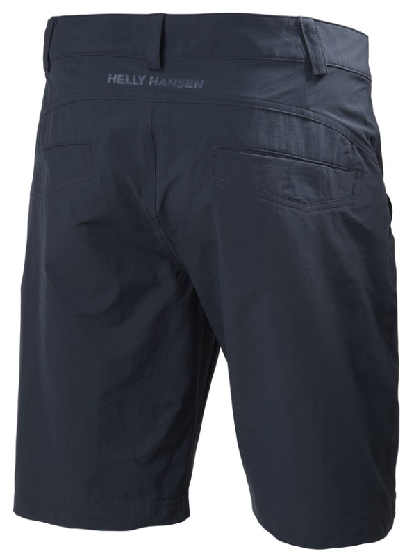 Rychleschnoucí celostrečová tkanina, 155 g/m² | Jeden knoflík a poklopec | Šikmé boční kapsy | Falešná, zadní výpustková kapsa | Poutka na pásek | Tištěné Helly Hansen na zadním sedle