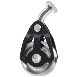 Hlavní kladka (šekl) je osazena šeklem Ronstan HHL z nerezové oceli, který je navržen pro vysoké zatížení a nízké tření.