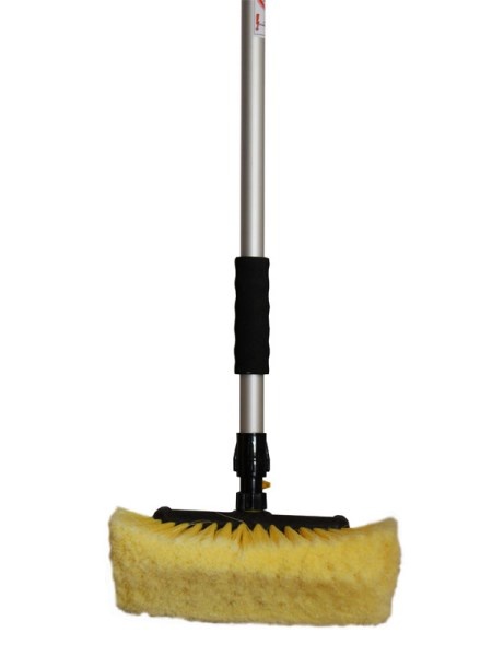 Teleskopický mycí kartáč má výsuvnou hliníkovou rukojeť, kterou lze nastavit na délku mezi 90 a 175 centimetry. Měkká hlava kartáče má boční štětiny. Pro optimální výsledky čištění je k dispozici praktický průtok vody s připojením rychlospojkou.