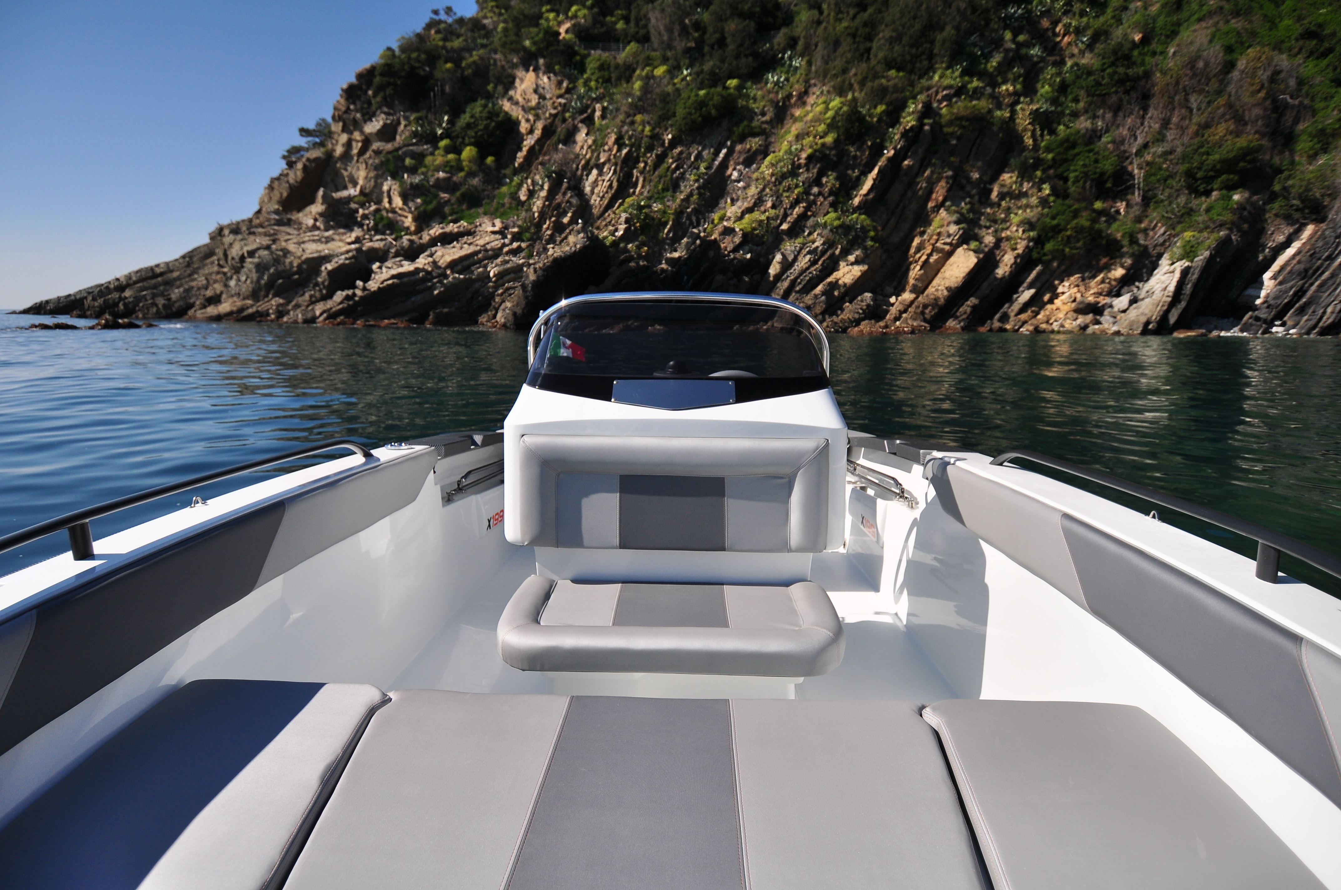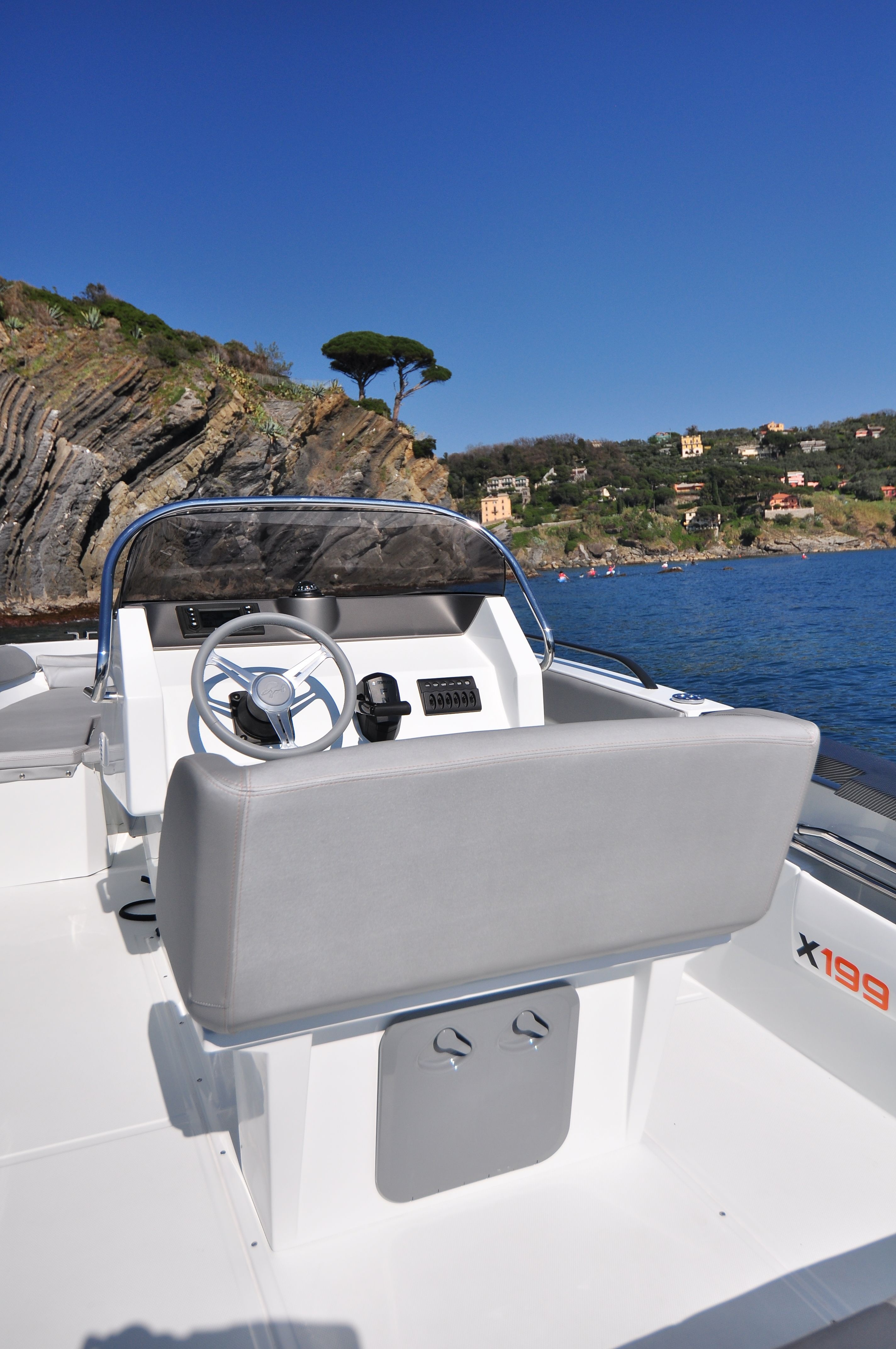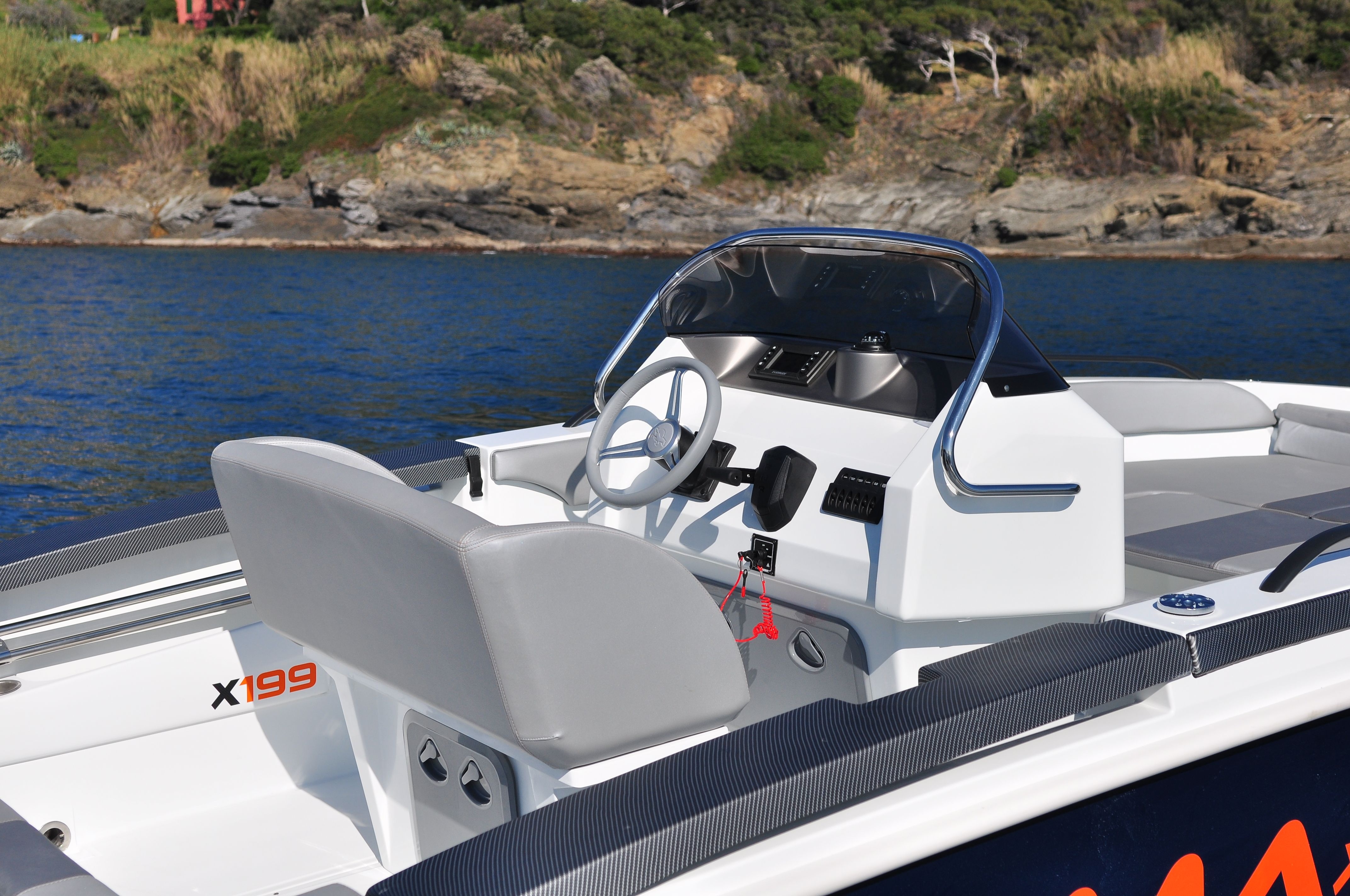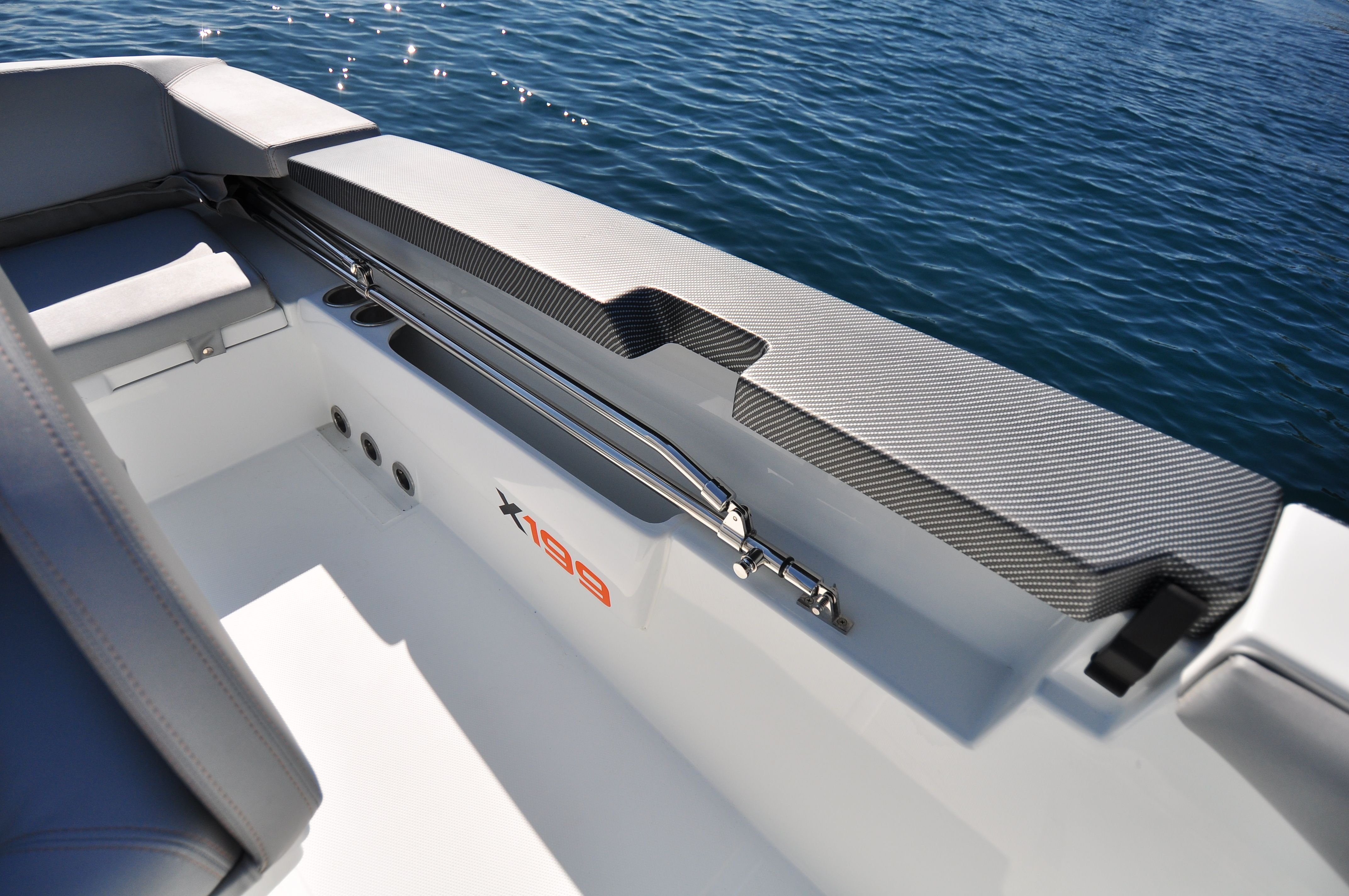 Do standardní výbavy motorového člunu BMA X199 Open patří konzole se sedadlem, sportovní sedadlo řidiče, volant a čalounění, nerezové kování, palivová nádrž 90 L, navigační světla, automatická bilge pumpa, bateriový odpojovač, pumpa, žebřík.