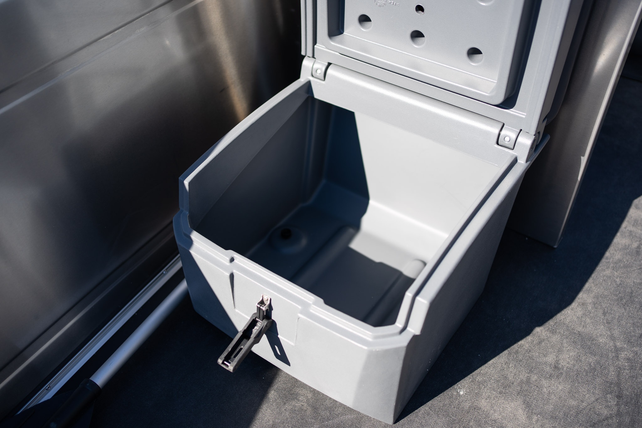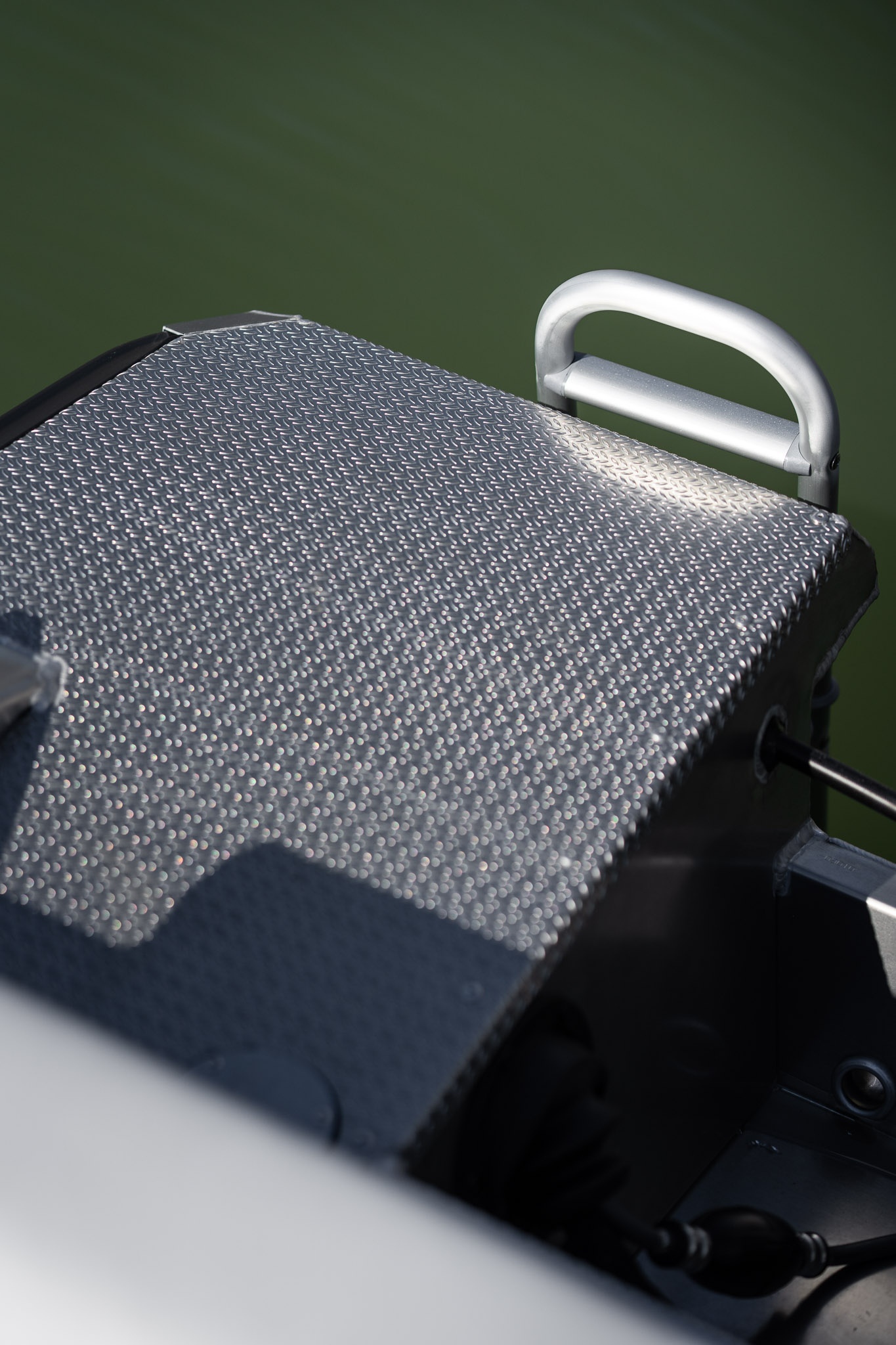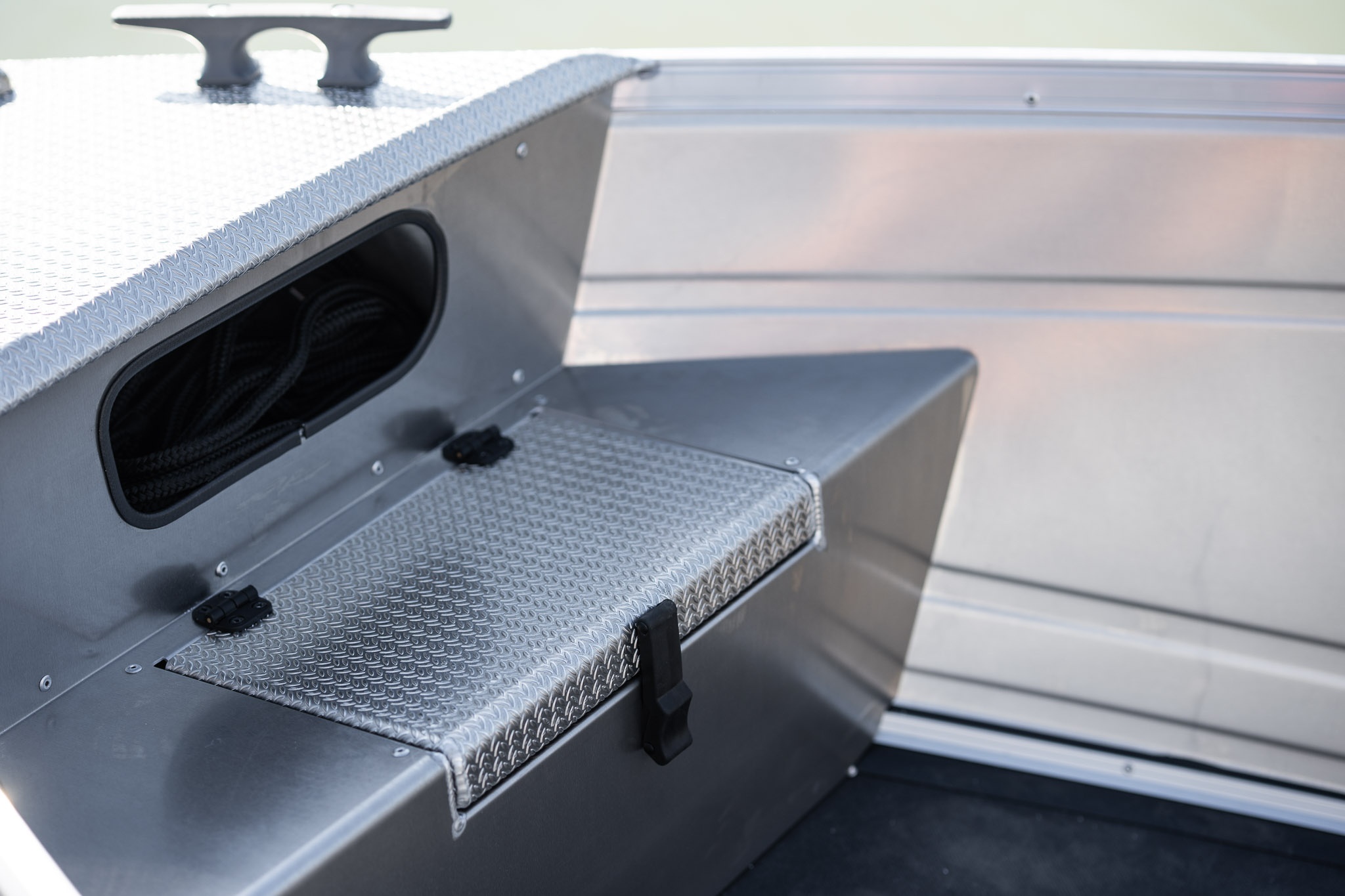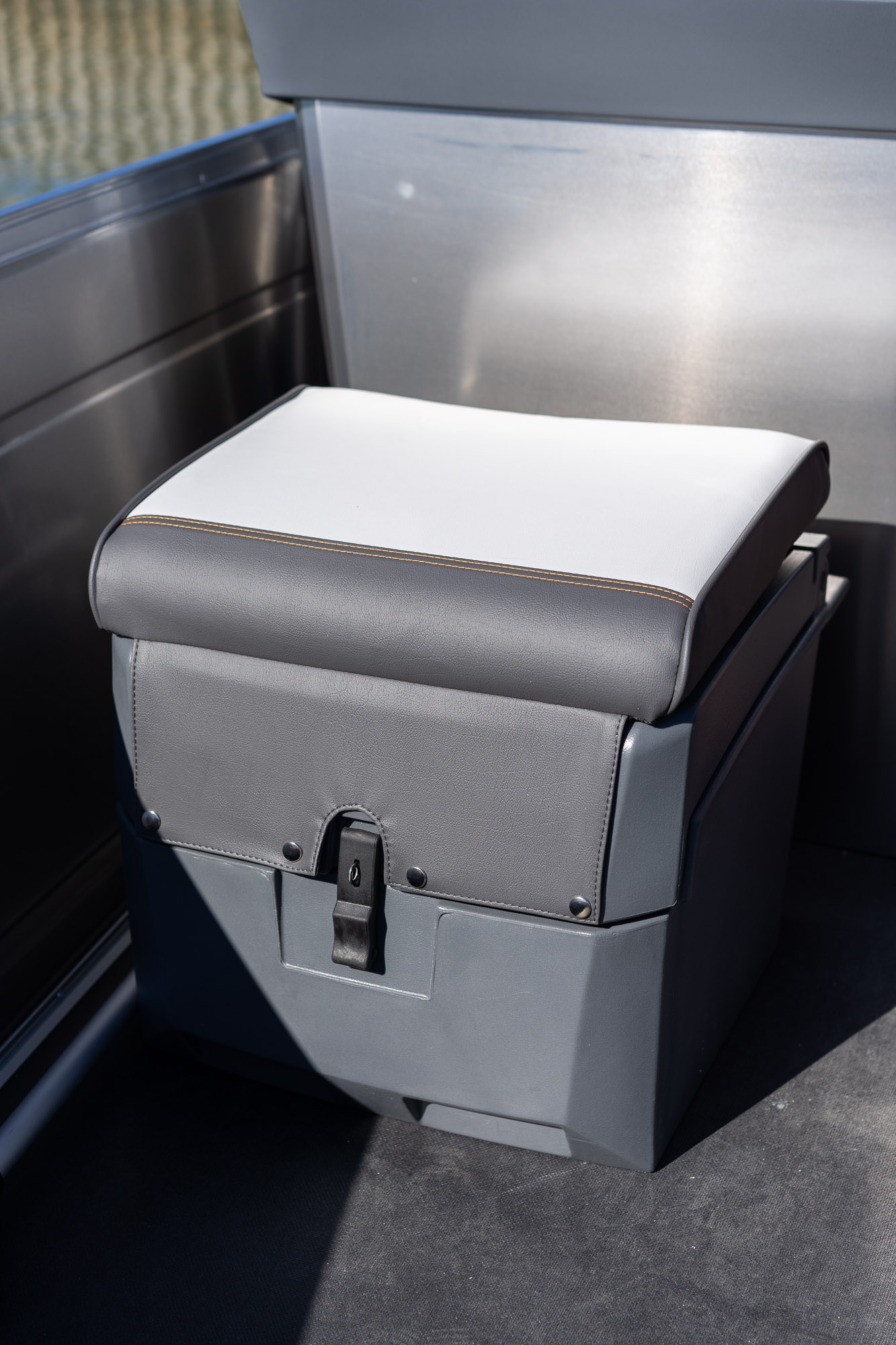 Odnímatelná zadní sedačka člunu Buster L1 umožňuje všestranné použití při rybaření. Sejmutím zadního sedadla se můžete dostat do záďových rohů lodi a maximalizovat pracovní prostor pro všechny ostatní rybáře na palubě. Další úložný prostor (45 l) najdete v odkládací schránce sedadel před konzolí řízení nebo ve volitelném sedacím boxu v přídi.