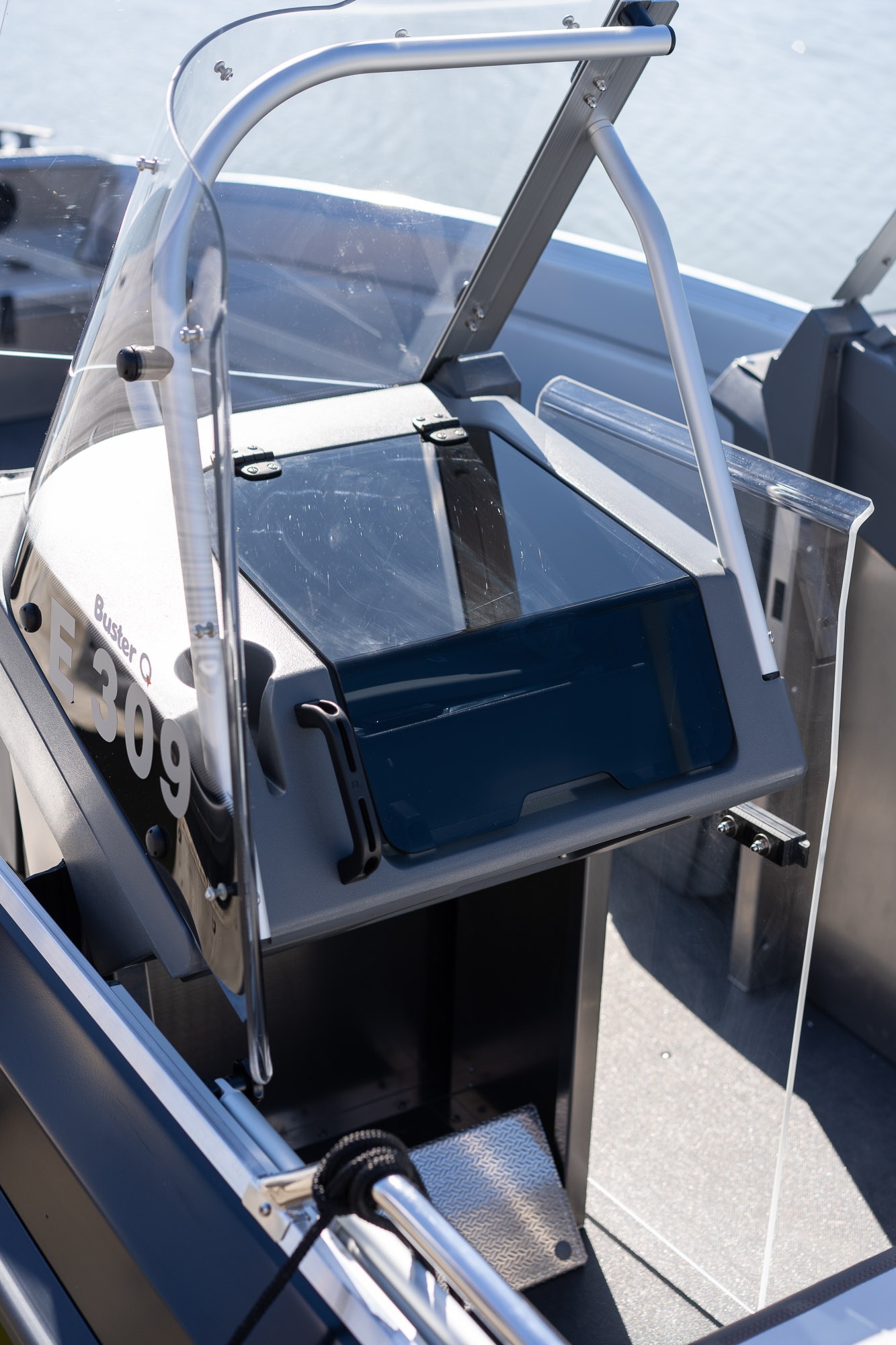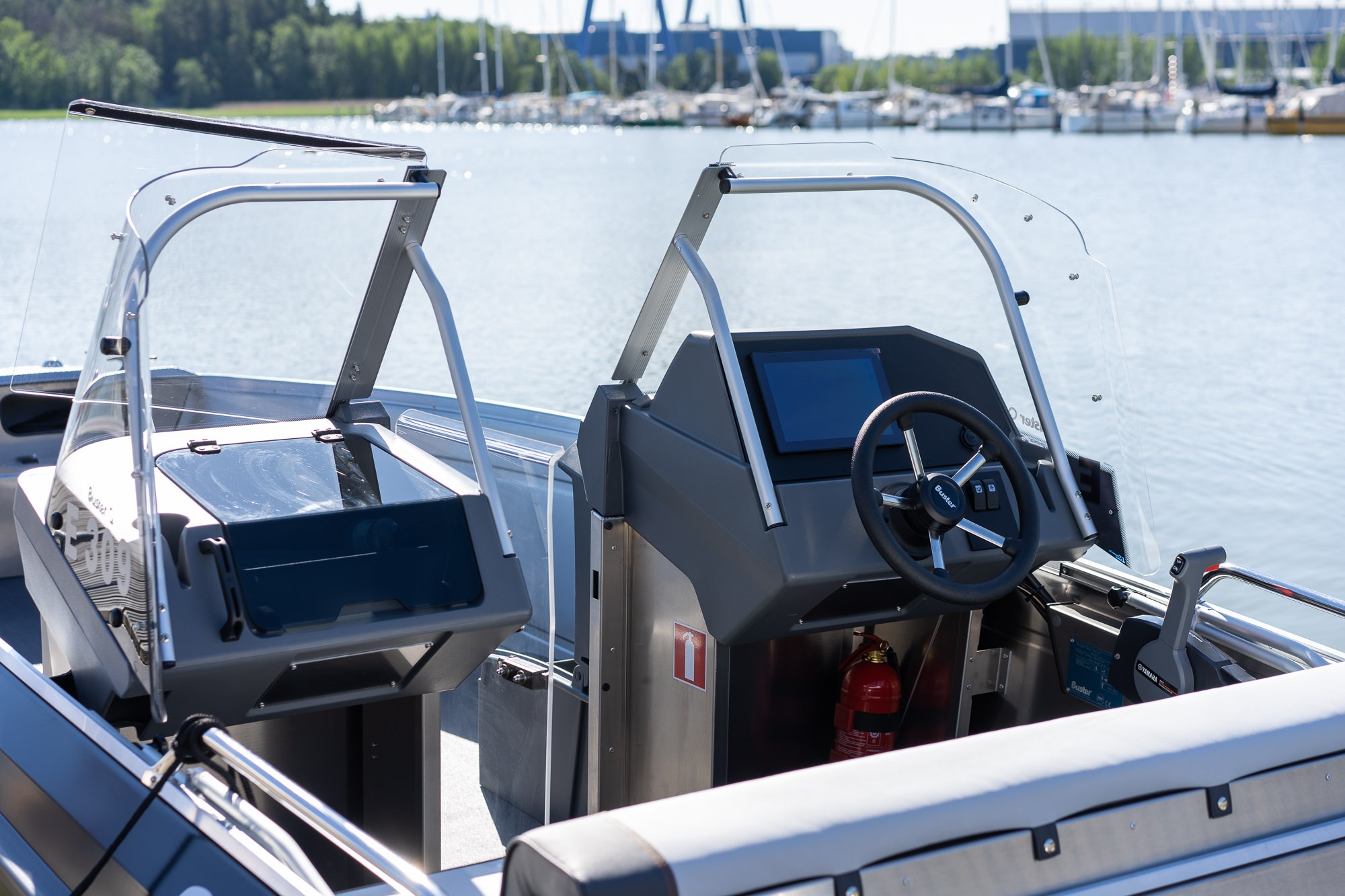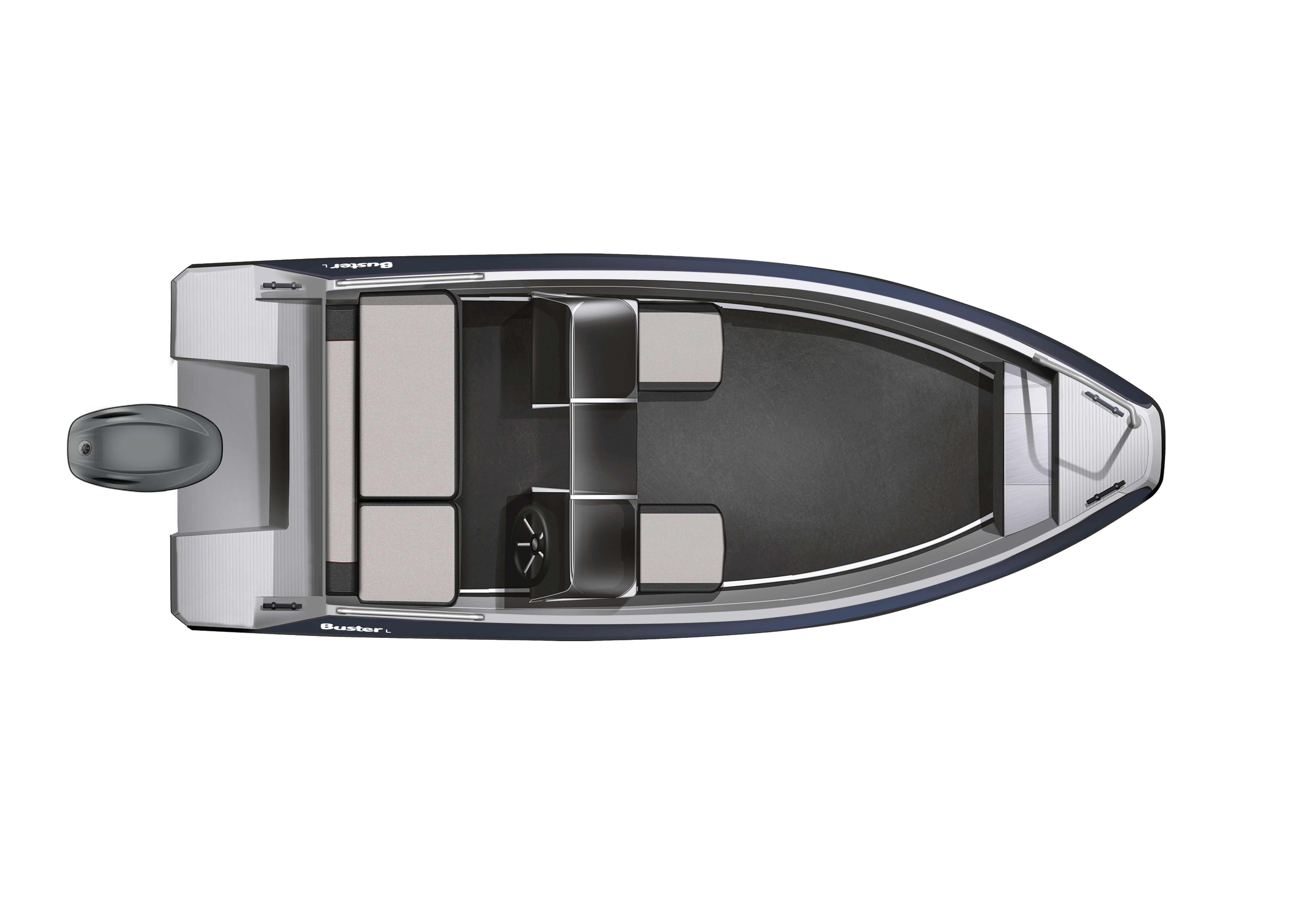 Standardní vybavení Buster L2 zahrnuje např. ergonomické konzole s bočními ochrannými skly, které lze kombinovat s volitelnými pevnými dveřmi, umístěními mezi konzole. Cestující na zadních sedadlech za dvojitými konzolami jsou tak bezpečně chráněni před větrem i stříkající vodou. Odnímatelné zadní sedadlo a úložné boxy na 45 l v sedačkách před konzolami poskytují praktický úložný prostor a umožňují přizpůsobení člunu vašim potřebám. Další úložný prostor lze doplnit volitelným příďovým sedadlem Rodbox.