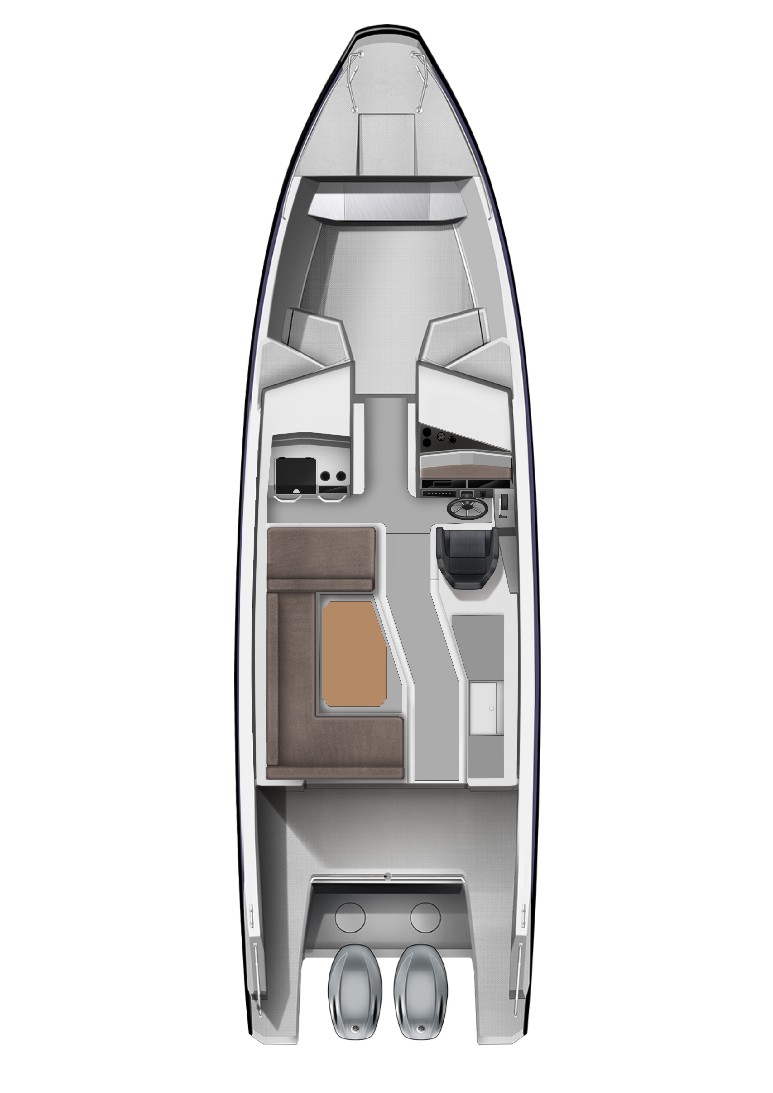 Phantom Cabin je náš největší kajutový člun vůbec. Díky mimořádnému trupu, pevné a odhlučněné konstrukci je z Phantomu Cabin nová generace lodí. Díky duální instalaci motoru je loď snadno ovladatelná, efektivní a poskytuje pocit bezpečí. Phantom Cabin má velmi dlouhý efektivní dojezd díky obrovské 800 litrové palivové nádrži. Řešení interiérového designu je funkční s nádechem luxusu. Velká panoramatická okna dávají přímořské scéně během cesty hlavní roli.