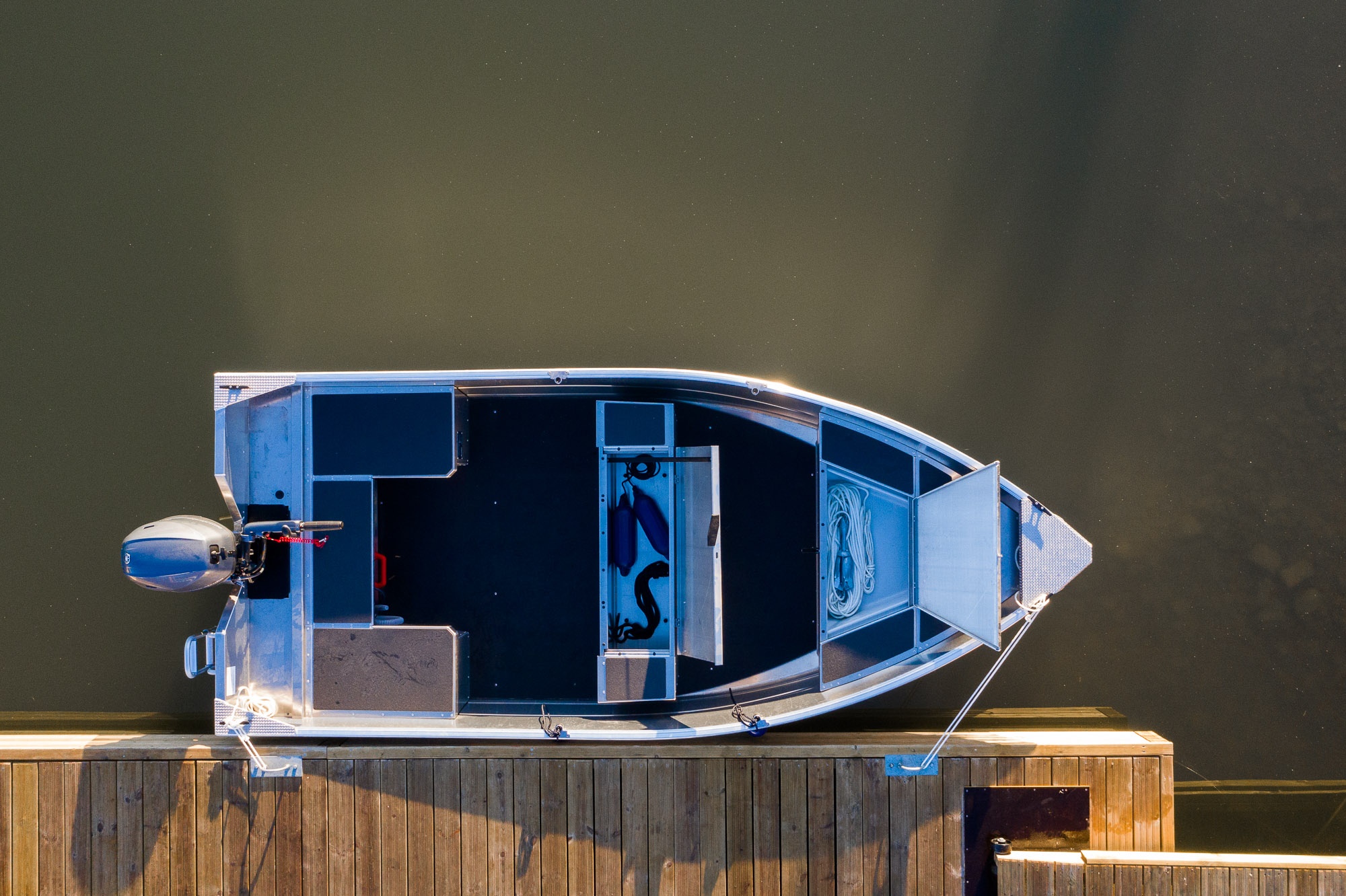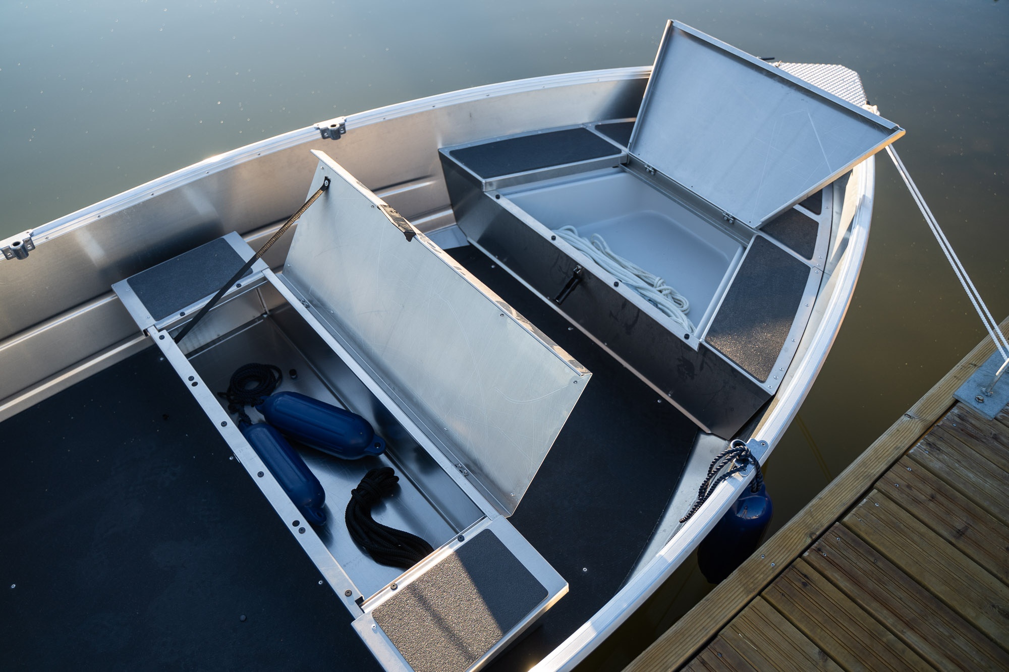 Nepotopitelný hliníkový člun Buster XS má kompozitní podlahu, která bez problémů odolá zátěži i počasí.