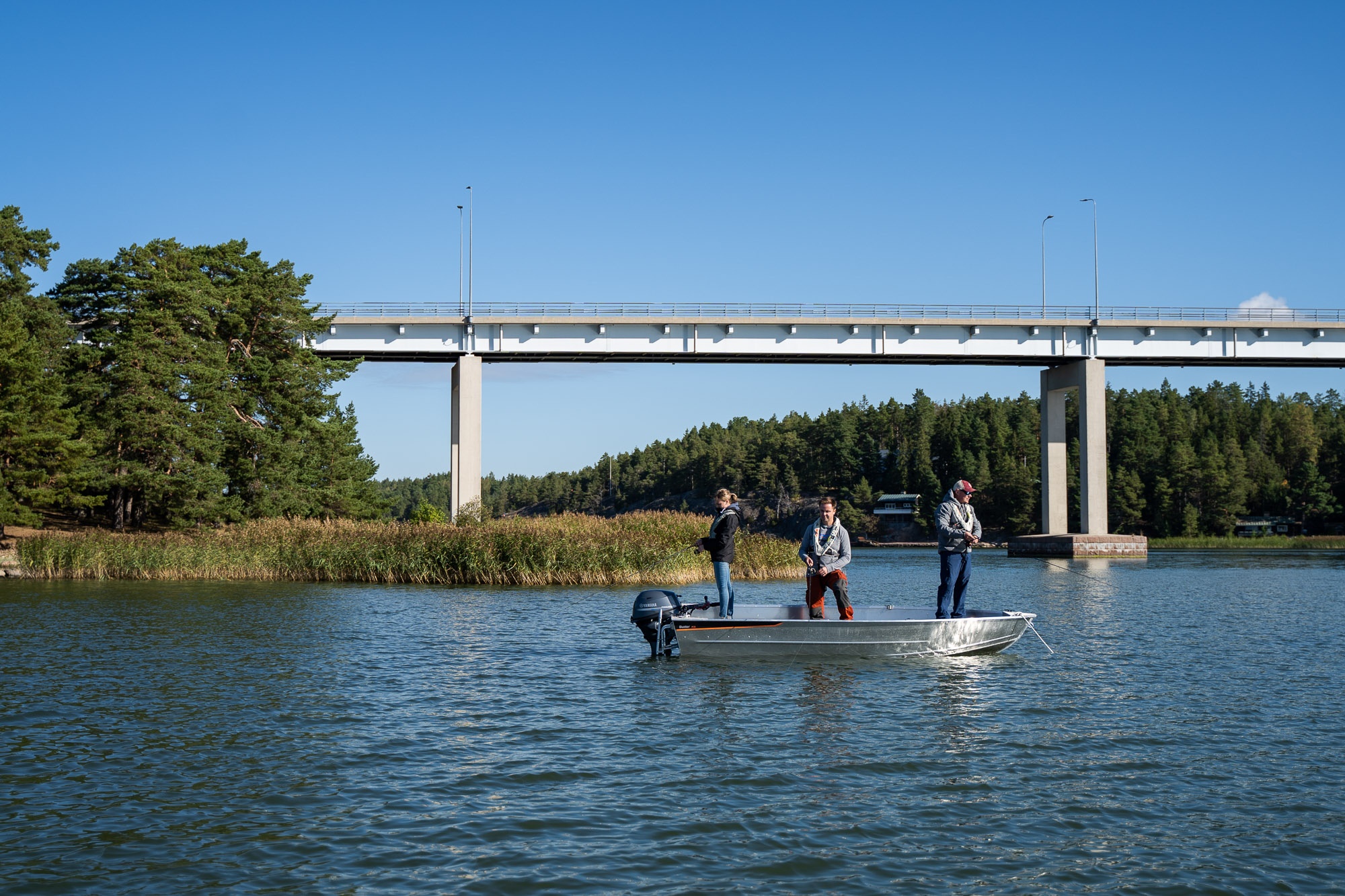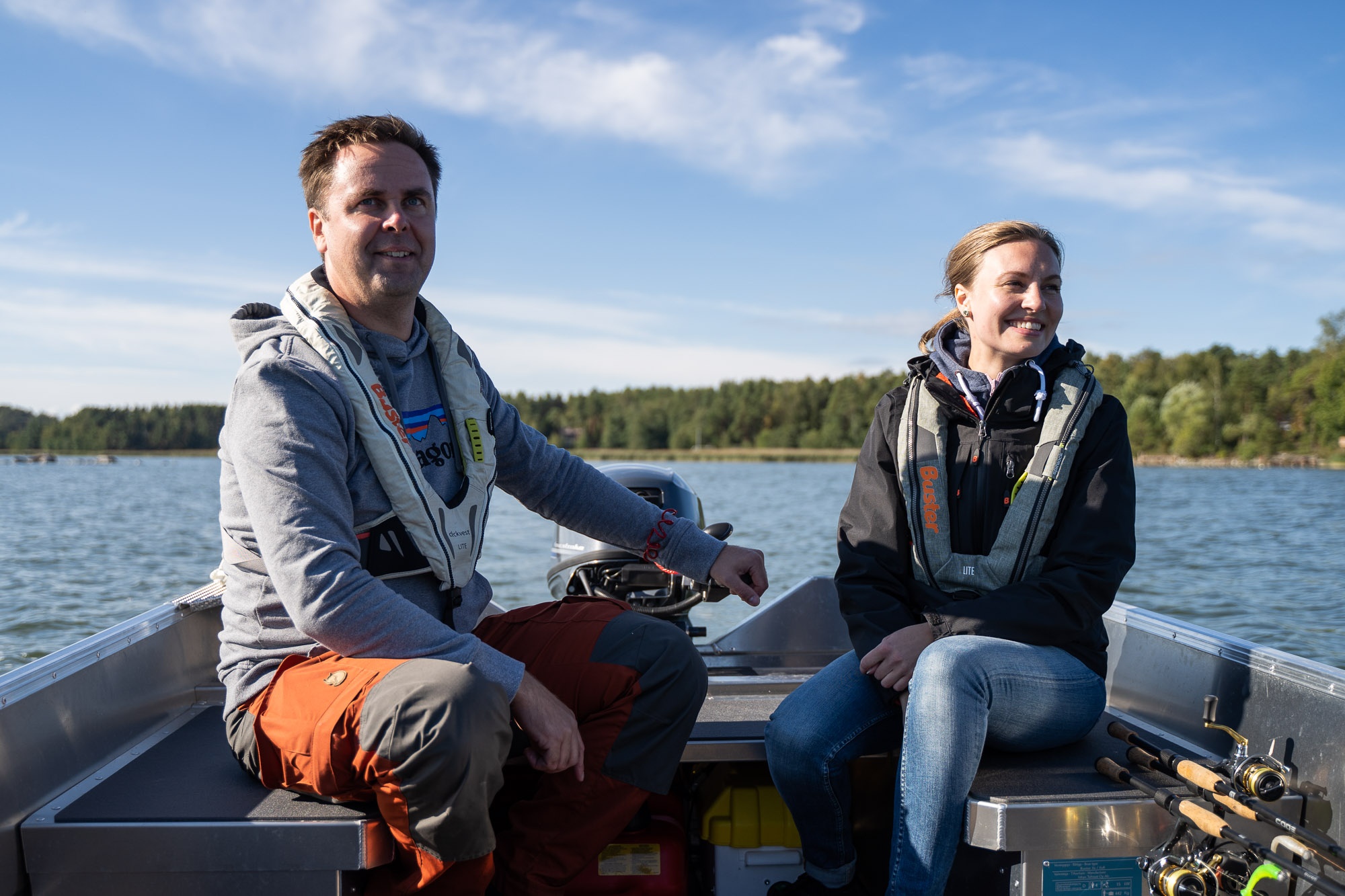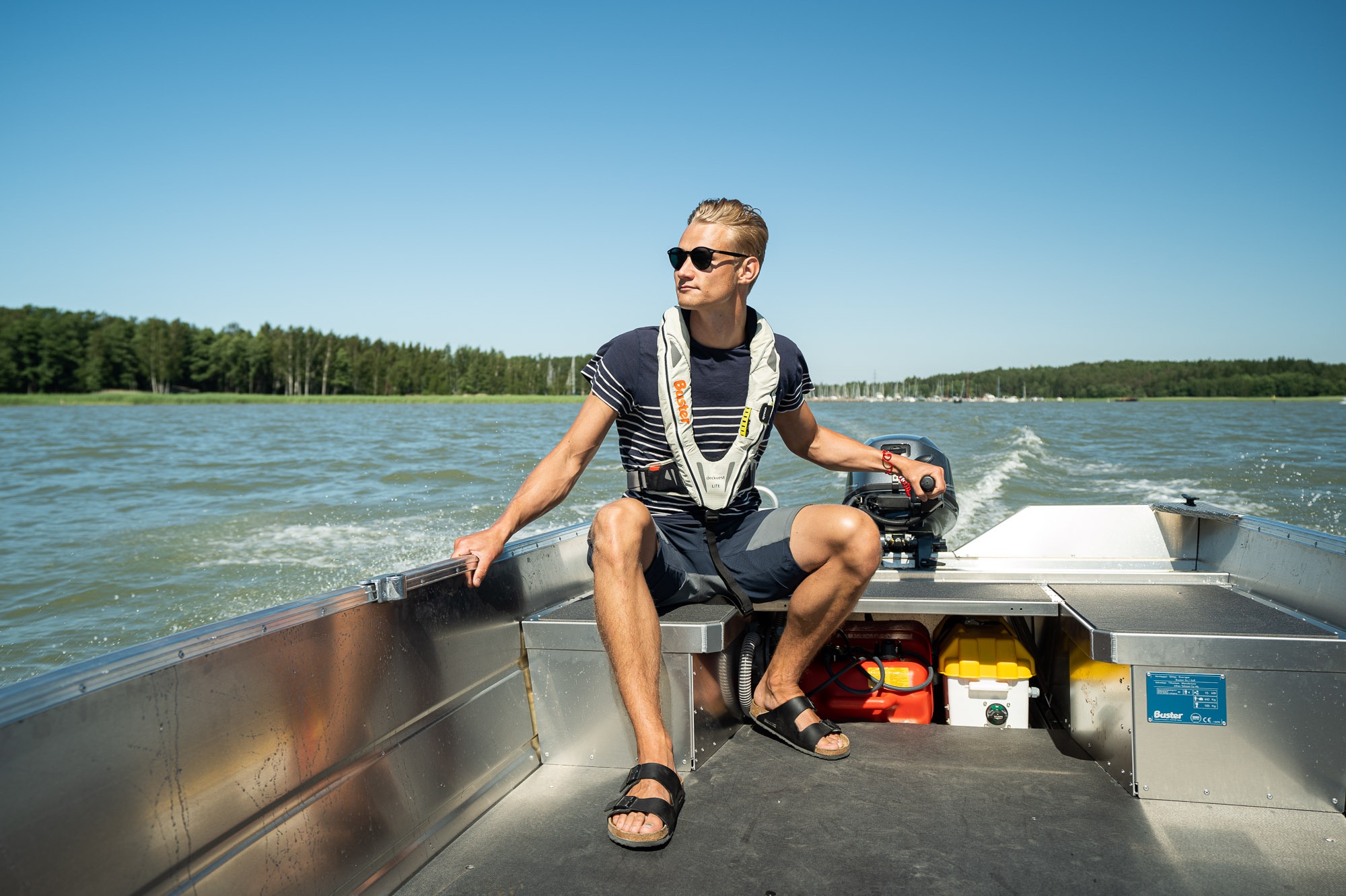 Celohliníkový člun Buster XS je překvapivě prostorný a není pro něj žádný problém bezpečně přepravovat čtyři osoby s nákladem. Jako rybářská loď je nekomplikovaná a funkční, paluba je dostatečně široká a dostatečné prostorná pro pohodlný a bezpečný pohyb. Velké a rovné příďové sedadlo slouží dobře jako rybářská plošina. Loď lze z odnímatelné prostřední lavice, ovládat i pomocí vesel. V přídi a prostředním sedadle jsou uzamykatelné přihrádky (samostatný zámek), na zádi je prostor pro baterie a palivovou nádrž.