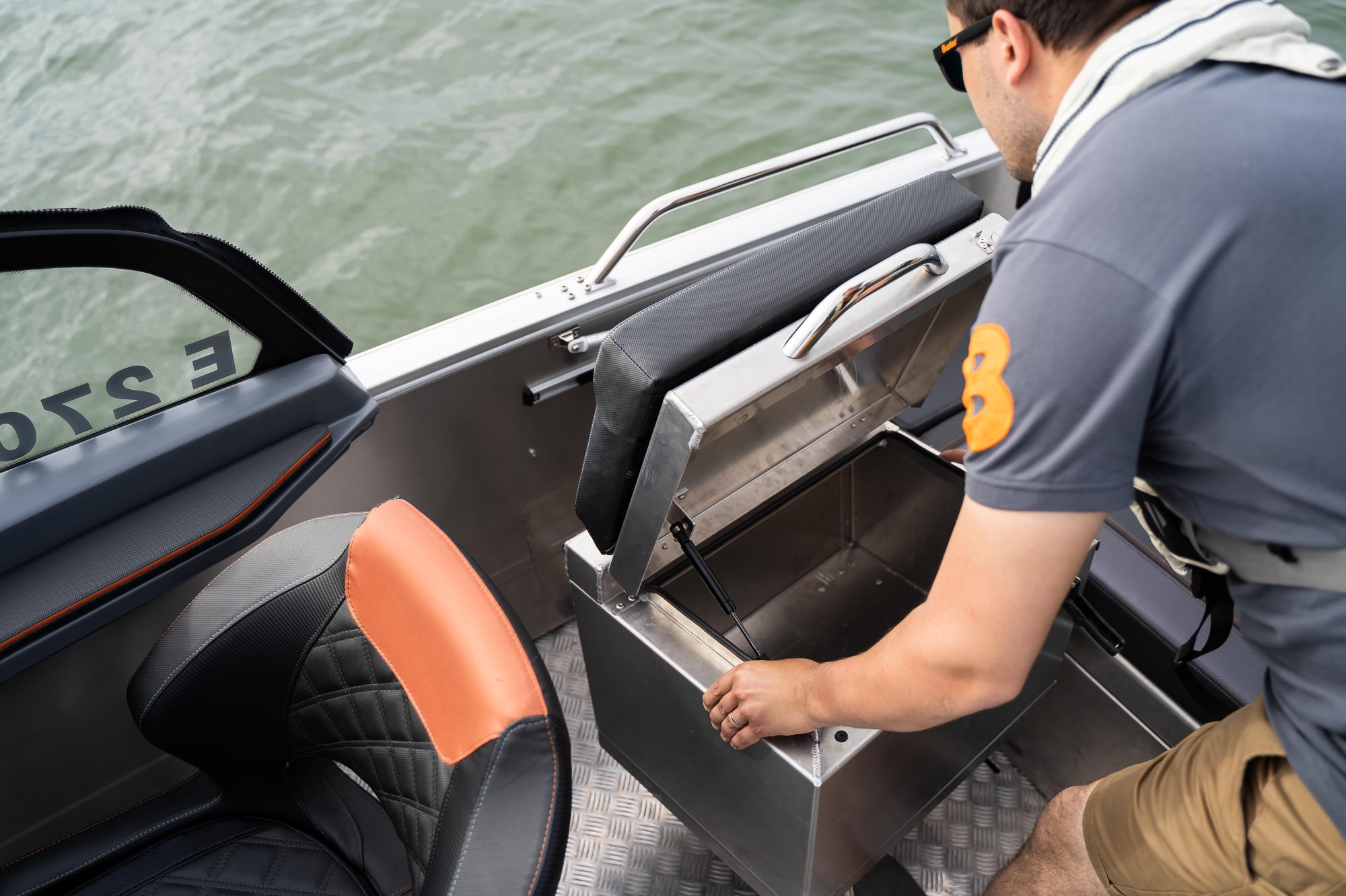 Kabina nového XXL je prostornější a zadní sedadlo má nyní velikost pohodlného gauče ve tvaru písmene U, což umožňuje ještě uvolněnější letní dny s ještě většími skupinami na vodě. Obnovený design rovnoměrných koupacích platforem a prostornější úložný prostor usnadňuje pohyb. Buster XXL je loď, díky níž budou vaše letní dny dokonalé díky své inspirativní sportovnosti, prvotřídní řiditelnosti a praktickému prostoru v kabině.