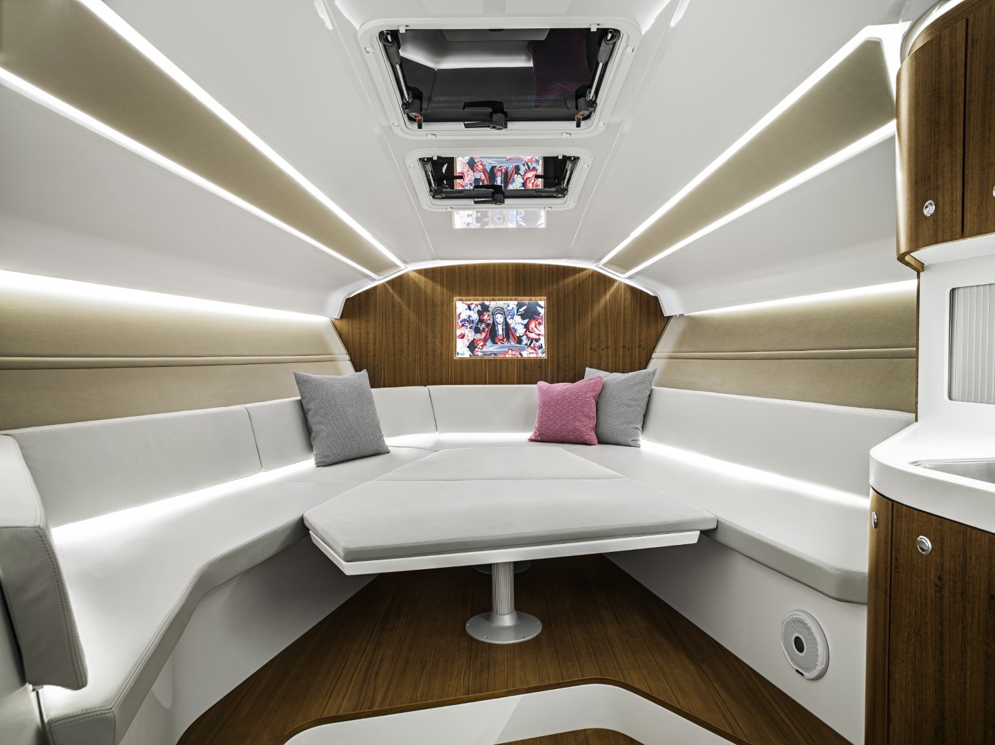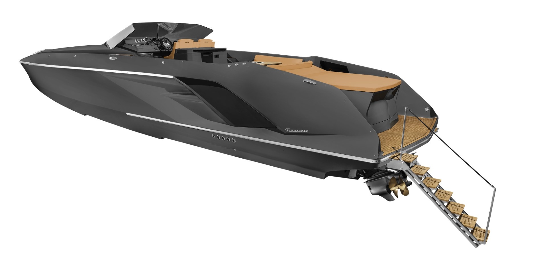 Na délce téměř 14 metrů byl vytvořen mimořádný offshorer, který doplňuje jedinečný design Frauscher s dokonalým životním prostorem pro víkendový výlet. Model 1414 Demon kombinuje typické designové prvky společnosti Frauscher, jako je plochá příď se svislou stopkou, tónované bezrámové čelní sklo, šikmý třecí pásek nebo přívody vzduchu z uhlíkových vláken, i na 46 stopách ponechává prostor pro sportovní potěšení z jízdy ve více než 40 uzlech.