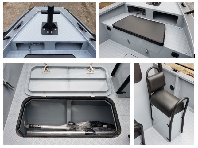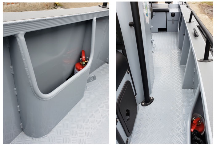 - Hluboký V trup z práškově lakovaného hliníku se samočinně odvodňujícím kokpitem
