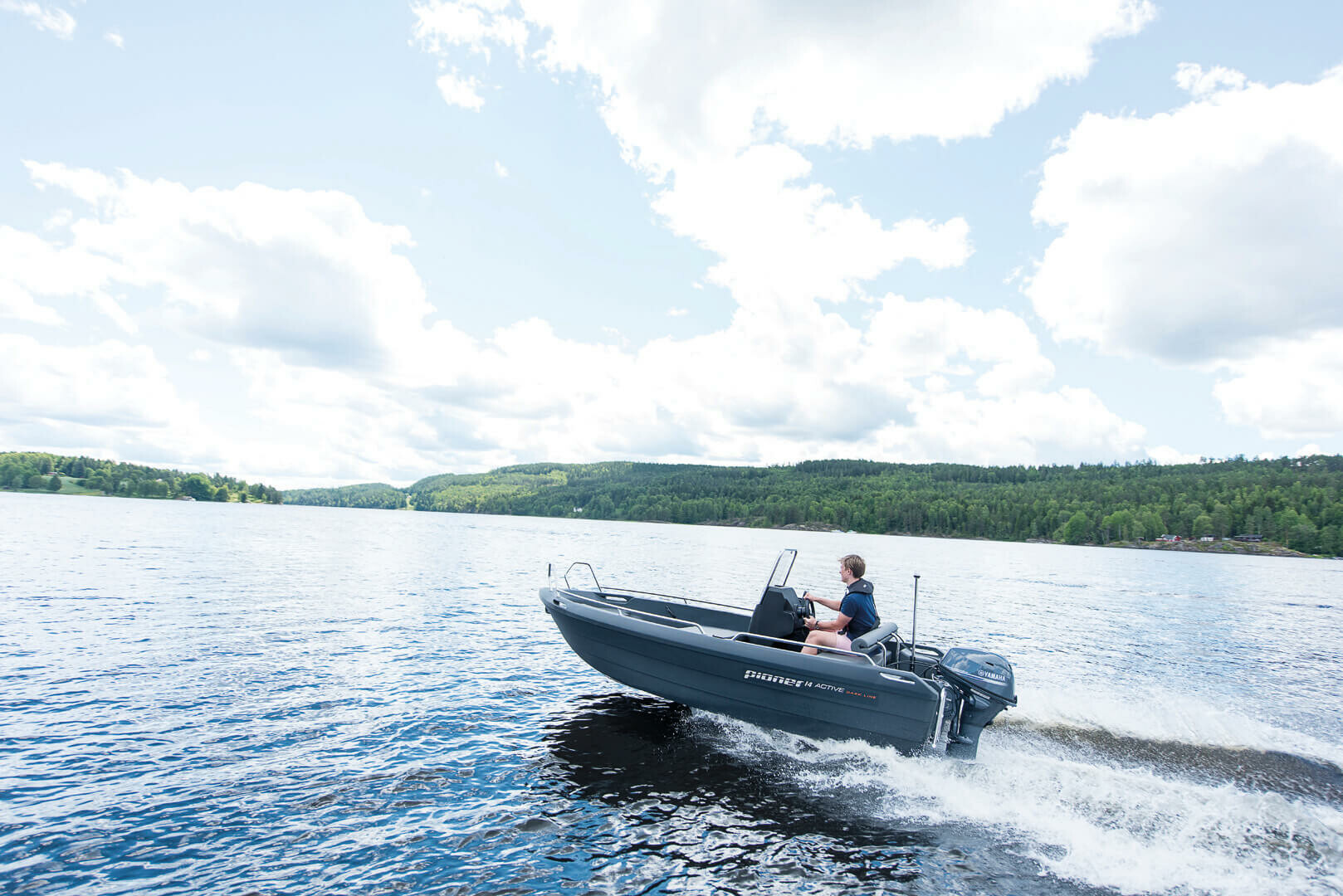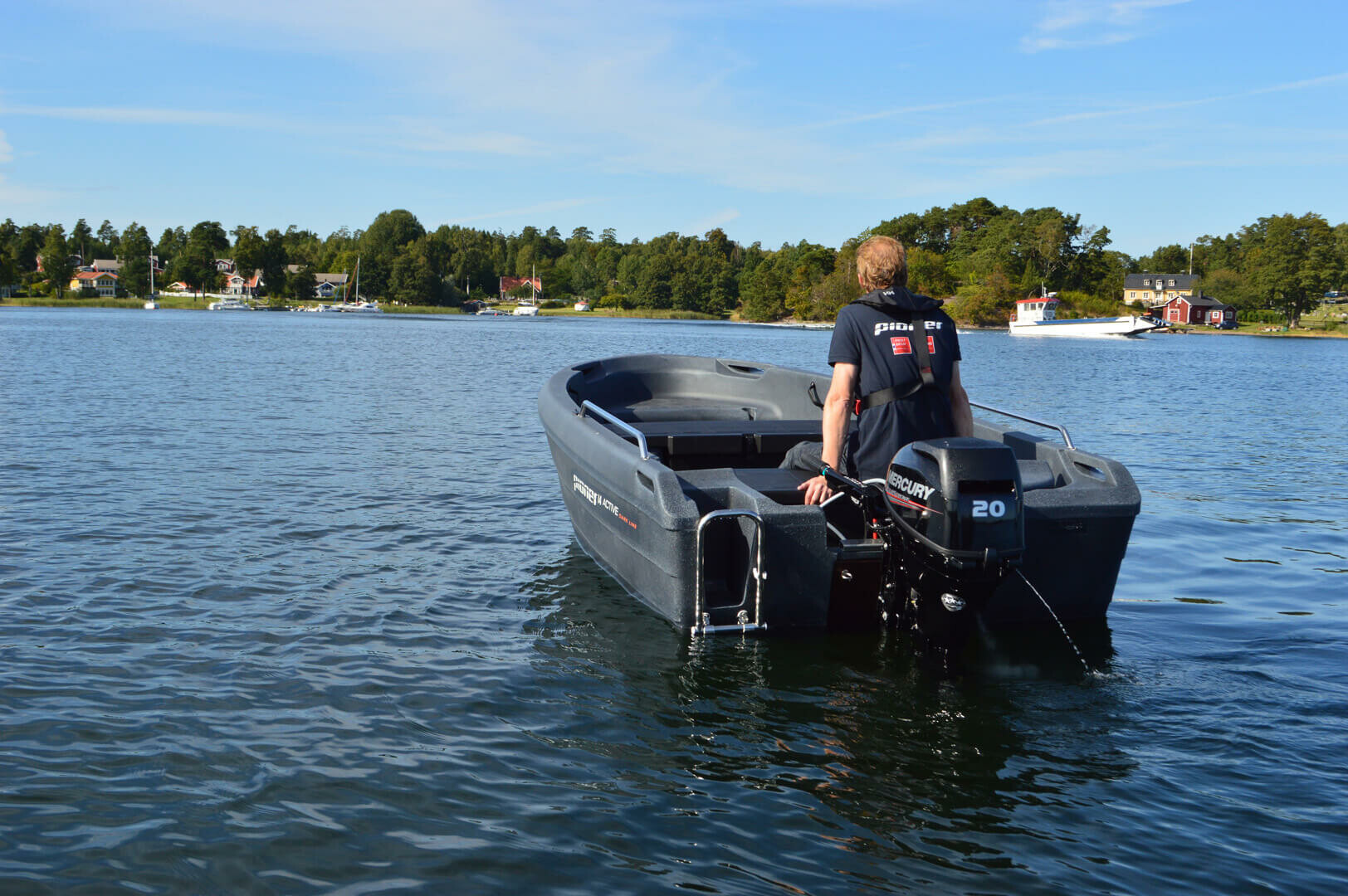 Loď má velký vztlak, vysokou nosnost a dokonale se hodí pro dnešní 4-taktní motory. Vysoký bok umožňuje suchou a pohodlnou jízdu na lodi, i když jsou nějaké vlny. Pioner 14 Active je prostorná loď s místem pro čtyři osoby a nabízí spoustu potěšení z plavby pro aktivní uživatele lodí.