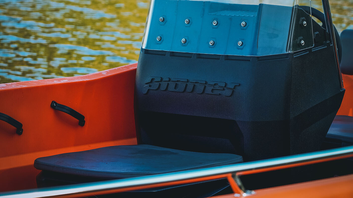 Loď je založena na 60 letech zkušeností s výrobou lodí z polyetylenu, udržitelného materiálu. Moderní design se spojil s chytrými řešeními. Můžete si vybrat mezi různými možnostmi výbavy, např. široká ovládací kormidla, jedna nebo dvě úzké kormidla s hydraulickým ovládáním, různá řešení sedadel a mnoho praktických doplňků.