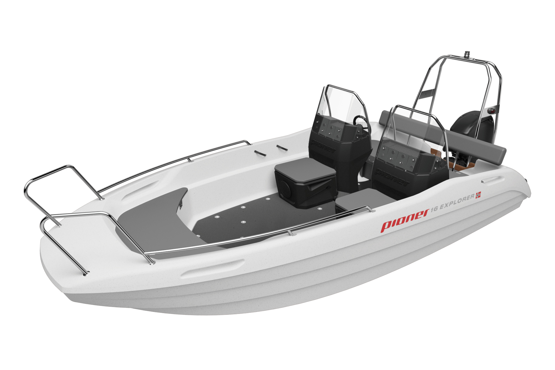 Pioner 16 Explorer je praktická a všestranná konzolová loď s kormidlem, která vyhovuje široké škále aplikací. Velký prostor na palubě je oblíbený a že je rychlý a ekonomický s motorem o výkonu 60 koní.