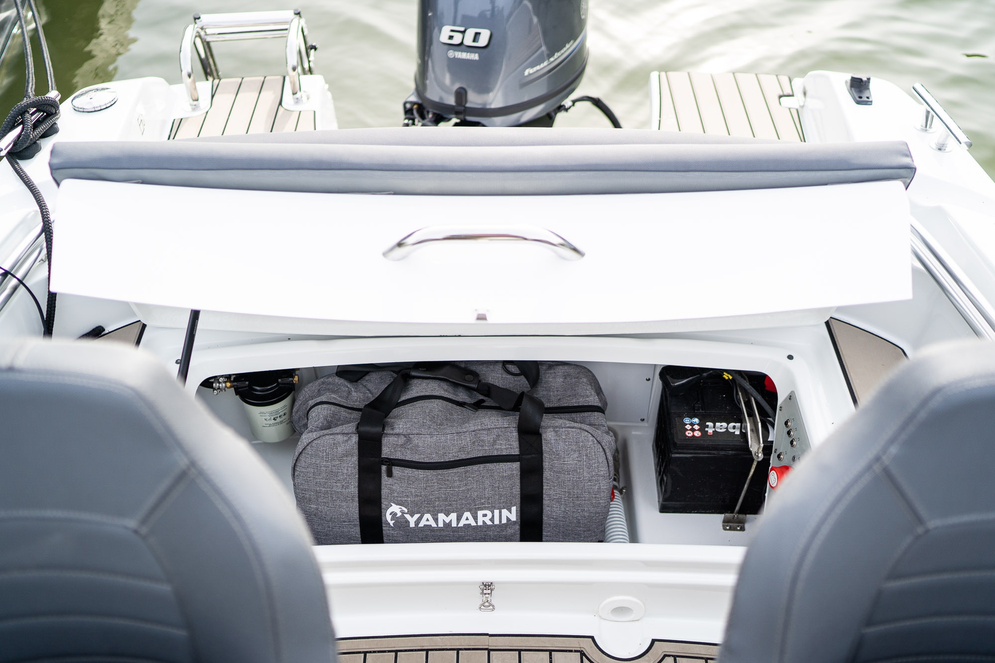 Yamarin 50 BR je standardně dodáván s 64litrovou pevnou palivovou nádrží, která eliminuje potřebu vyjímatelné palivové nádrže, čímž se maximalizuje úložný prostor pod zadní pohovkou. Další úložný prostor najdete pod příďovými sedadly.