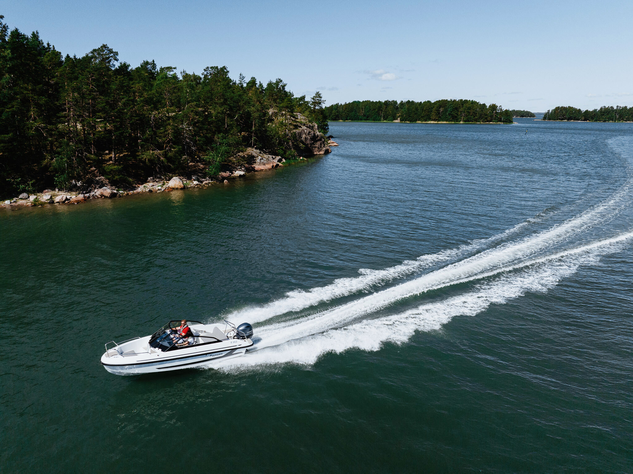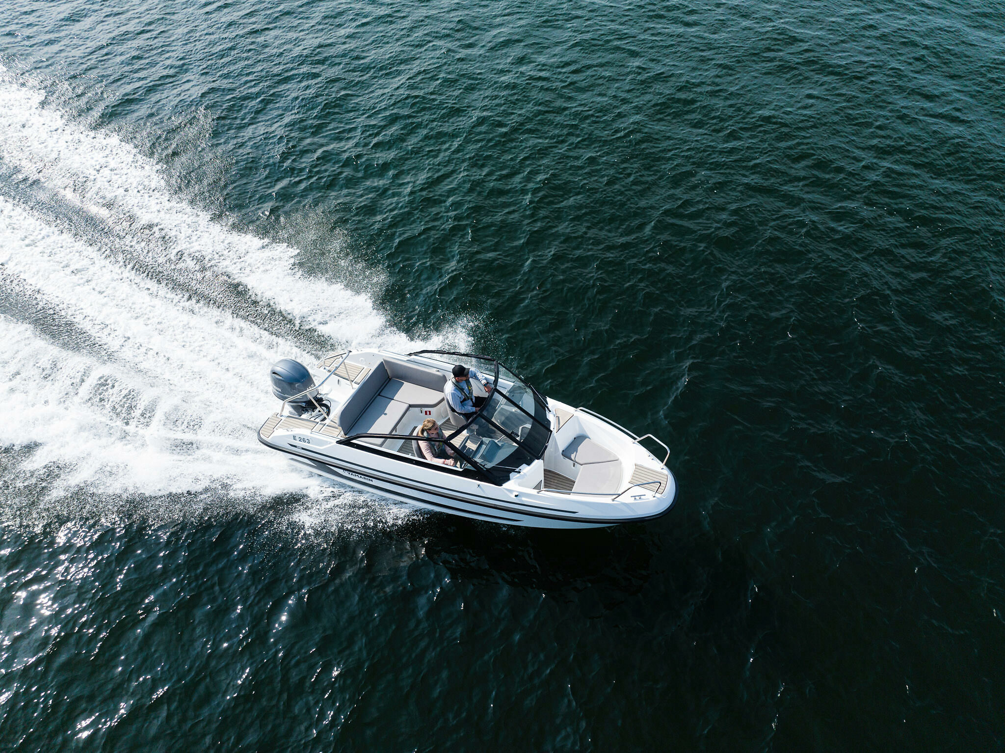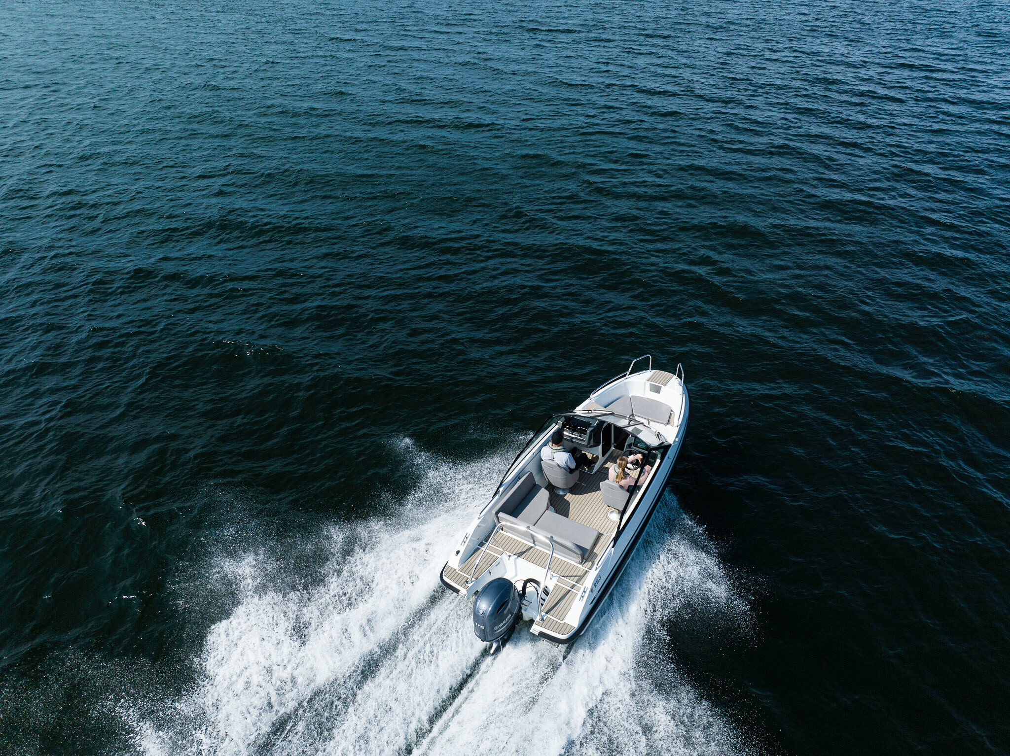 Standardní chytrý displej Yamarin Q s elektronickými navigačními mapami Navionics usnadňuje plavbu. Yamarin Q obsahuje také rádio a můžete jej použít i pro streamování hudby z vlastního chytrého zařízení. Mezi volitelné příslušenství patří vyhledávač ryb, sonar a dálkové ovládání, které usnadňuje ovládání chytrého displeje a nastavení hlasitosti, například při relaxaci na zadní pohovce.
