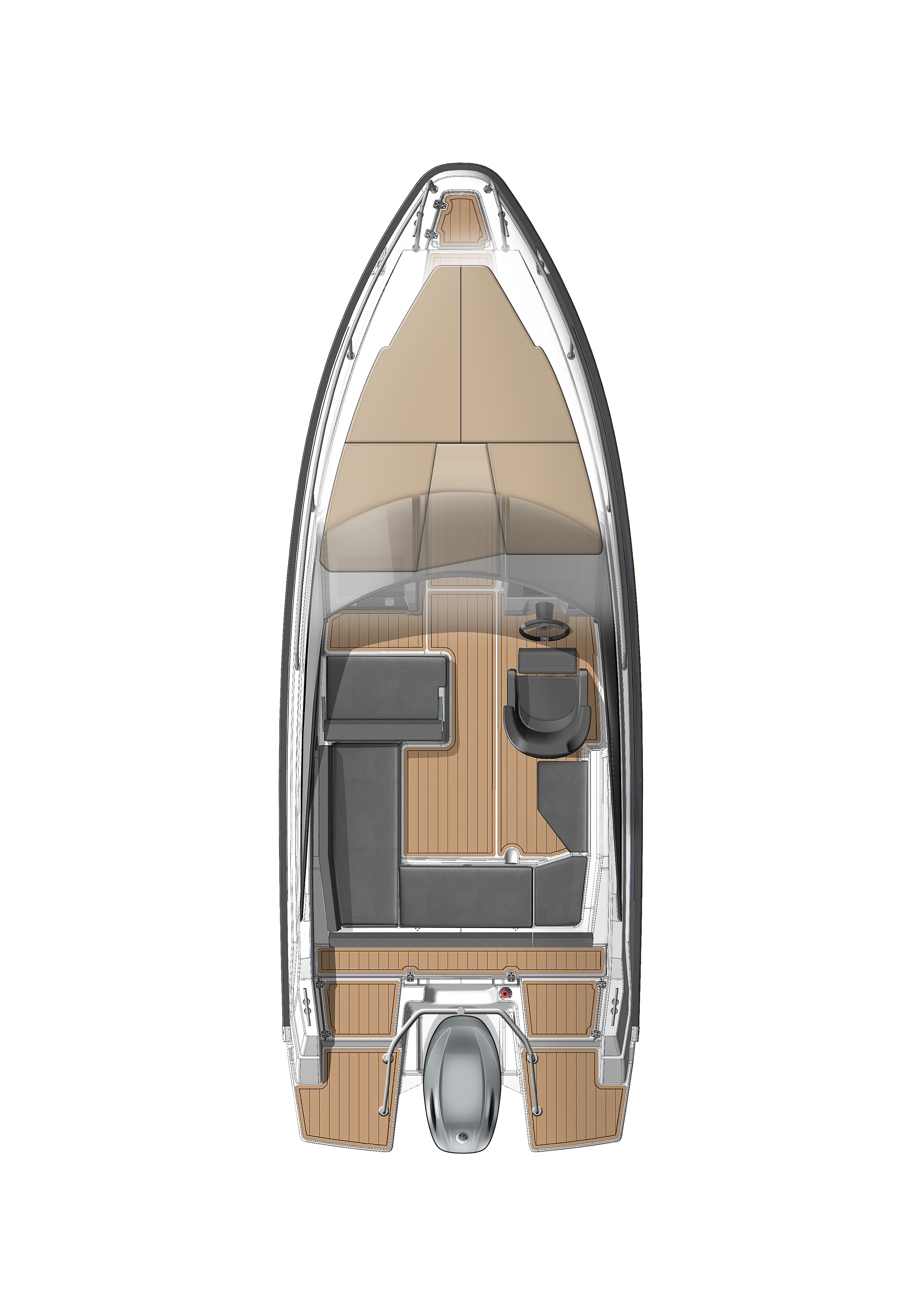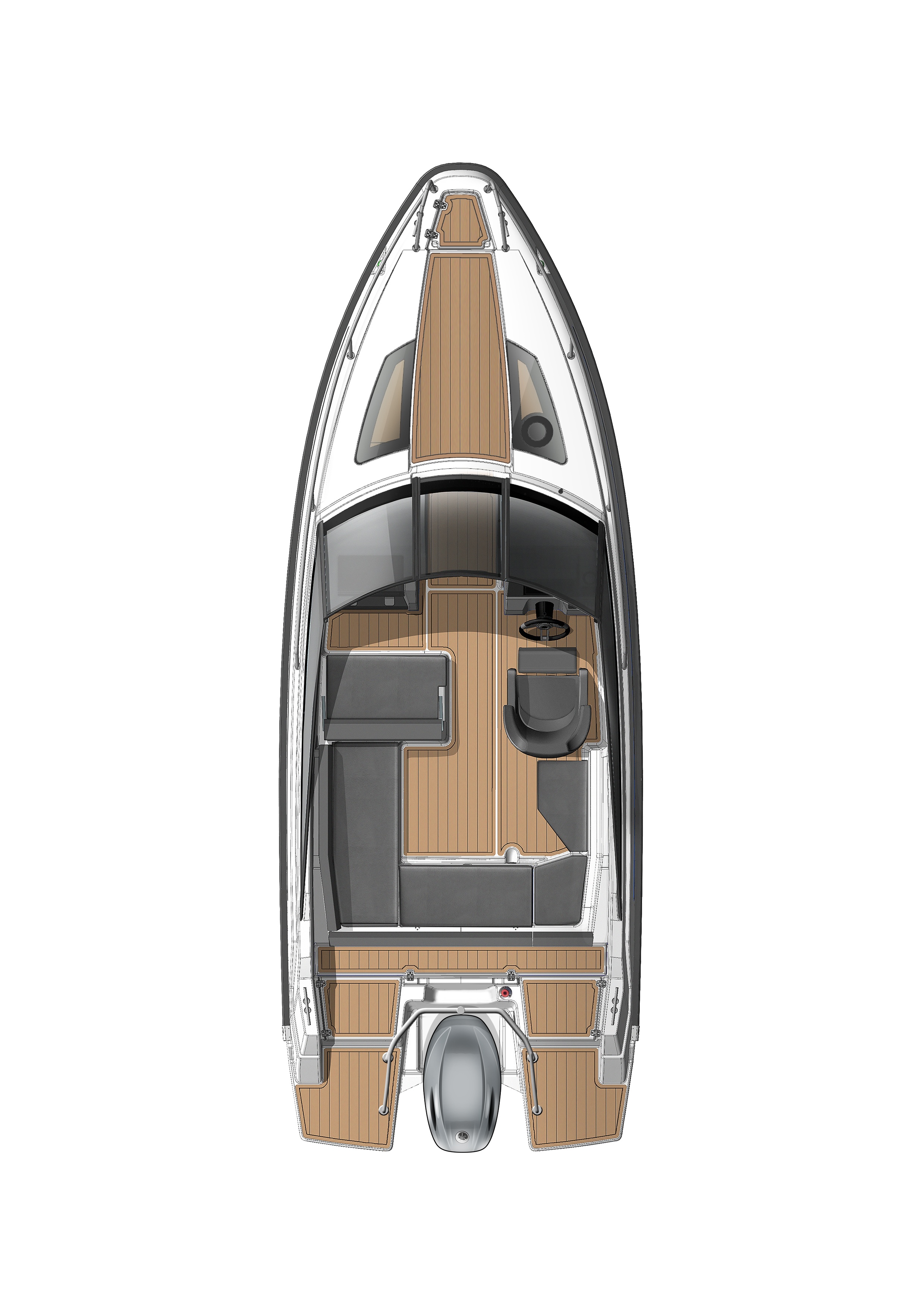 Yamarin 63 DC má standardně krásnou teakovou palubu, která pokrývá palubu od přídě až po plavecké plošiny. Teaková paluba je pod nohama vždy příjemná a ani na mokru nebude kluzká.