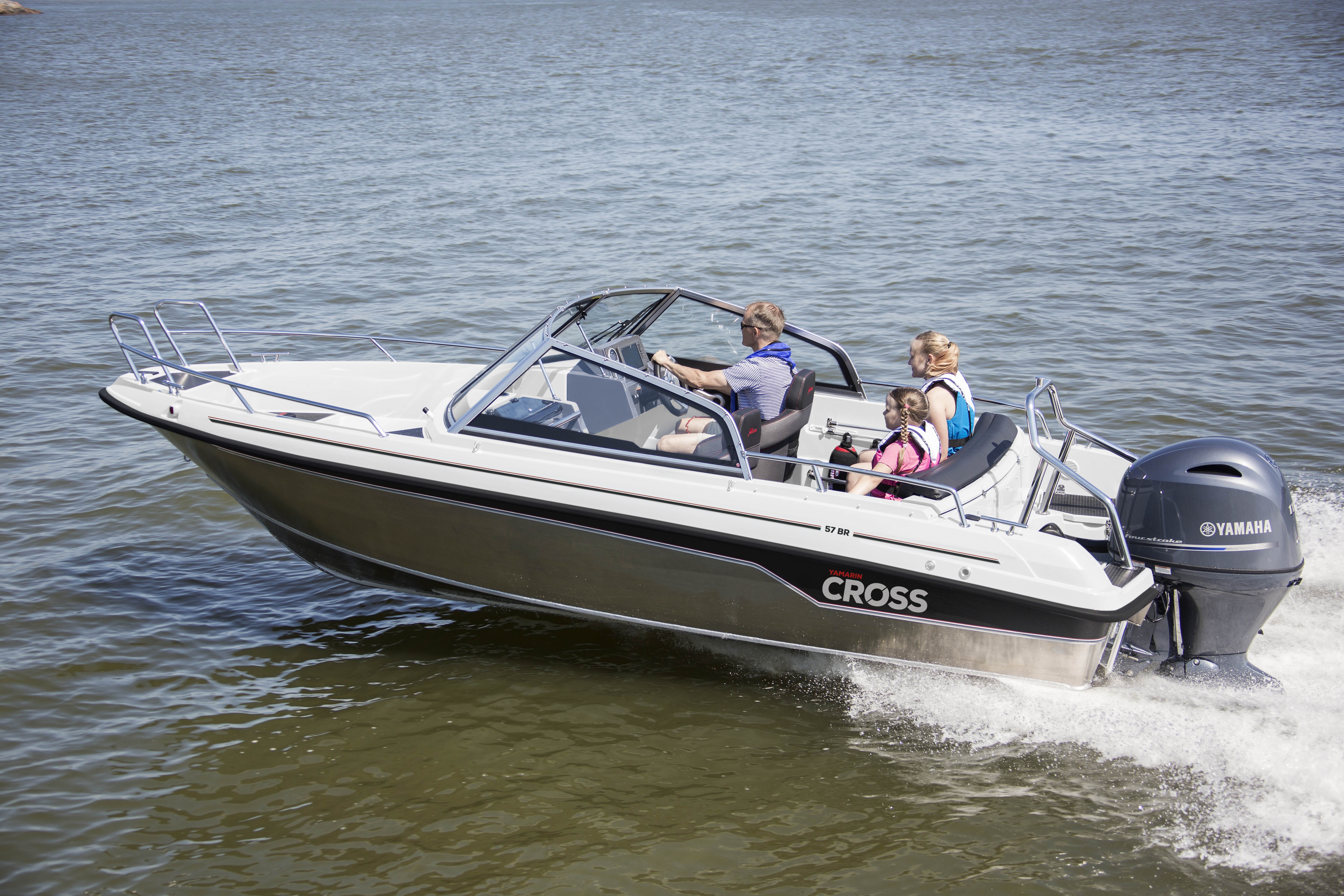 Stylový Yamarin Cross 57 BR nabízí vynikající jízdní vlastnosti pro rychlé plavby lodí. Tato všestranná a rychlá loď je vynikající pro vodní sporty, jednodenní výlety nebo jako rychlý tender s vysokou a robustní přídí a záďovým zábradlím pro zvýšení bezpečnosti. Za vysokým čelním sklem lodi leží meziprostor, který je chráněný a nejprostornější ve své velikostní třídě. Kromě toho má 57 BR ve standardní výbavě impozantní podlahu z tmavého hliníku.
