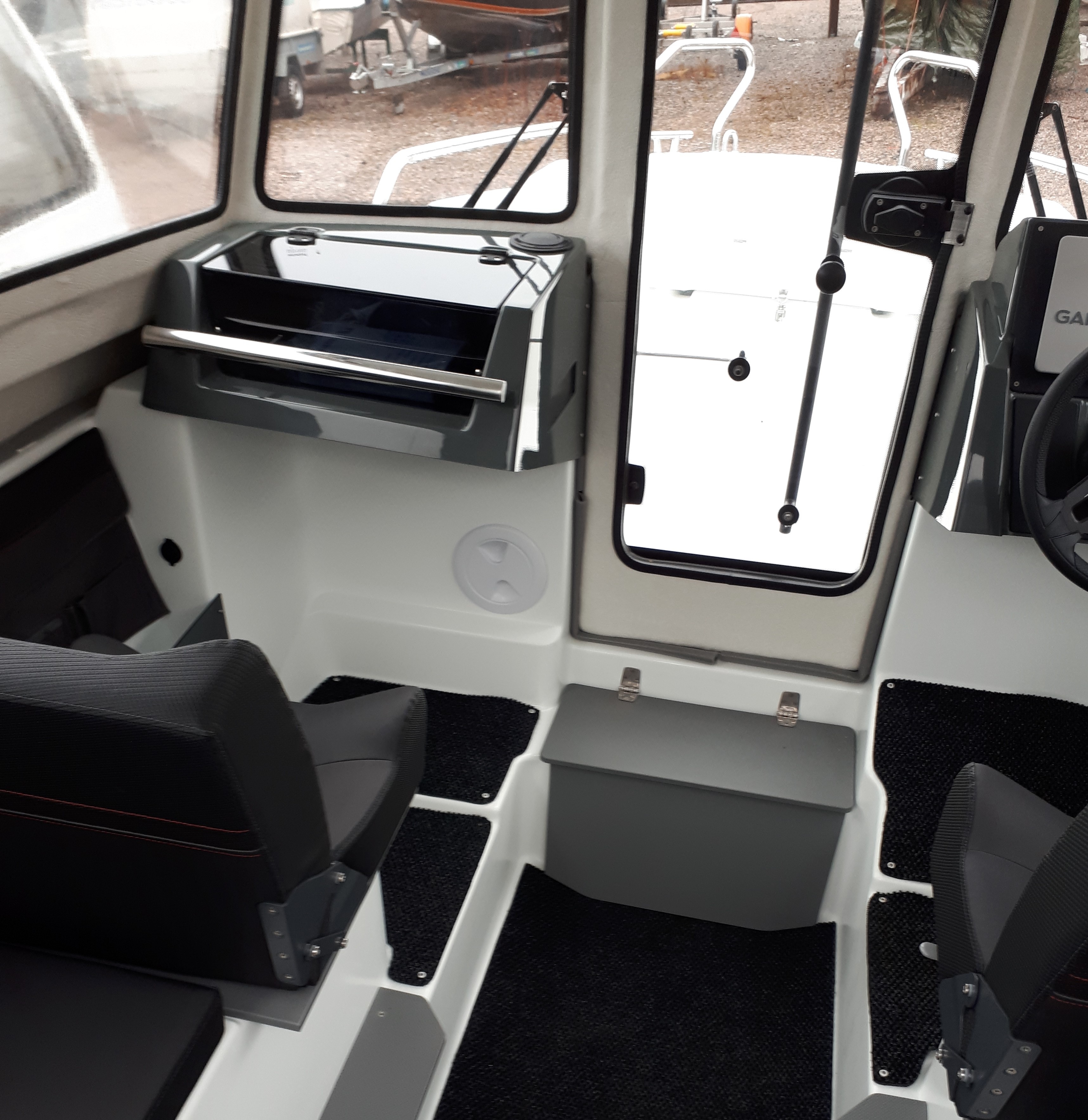 Kabinový Cross 60 Cabin funguje skvěle pro sportovní rybolov nebo jako tender. Díky prostorné přídi, která usnadňuje nakládání a vykládání, umožňuje široká středová ulička Cabin 60 obejít vnitřek lodi. Velká okna a střešní okno na straně řidiče zajišťují výhled kapitána do všech směrů, zatímco kabina nabízí dostatek prostoru pro cestující a vybavení. Kromě toho je Cabin Cross 60 k dispozici také s vnějším řízením.