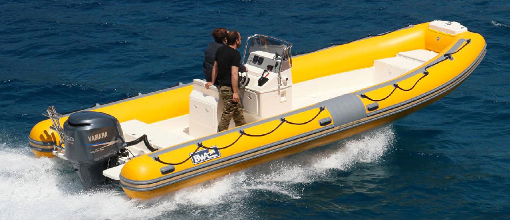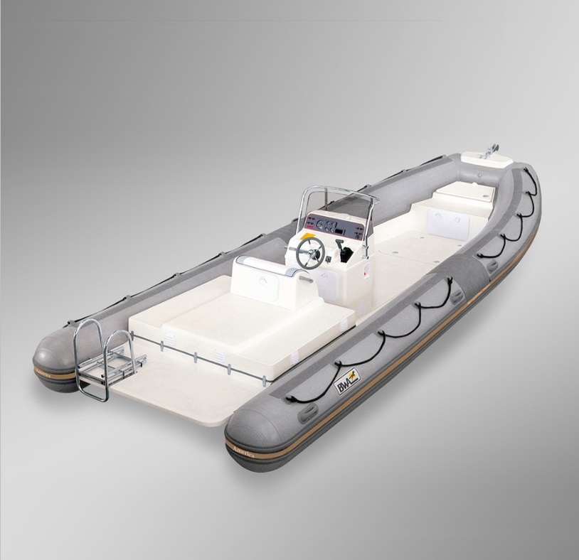 Mezi standardní výbavou nafukovacího člunu BWA 25' Open naleznete příďovou kotevní schránku, příďovou a záďovou úložnou schránku, záďové laminátové platformy, tažná a vázací oka, gumové zesílení tubusů, zesílený materiál tubusů 1670 dtx, opravný kit, pumpu a pádla.