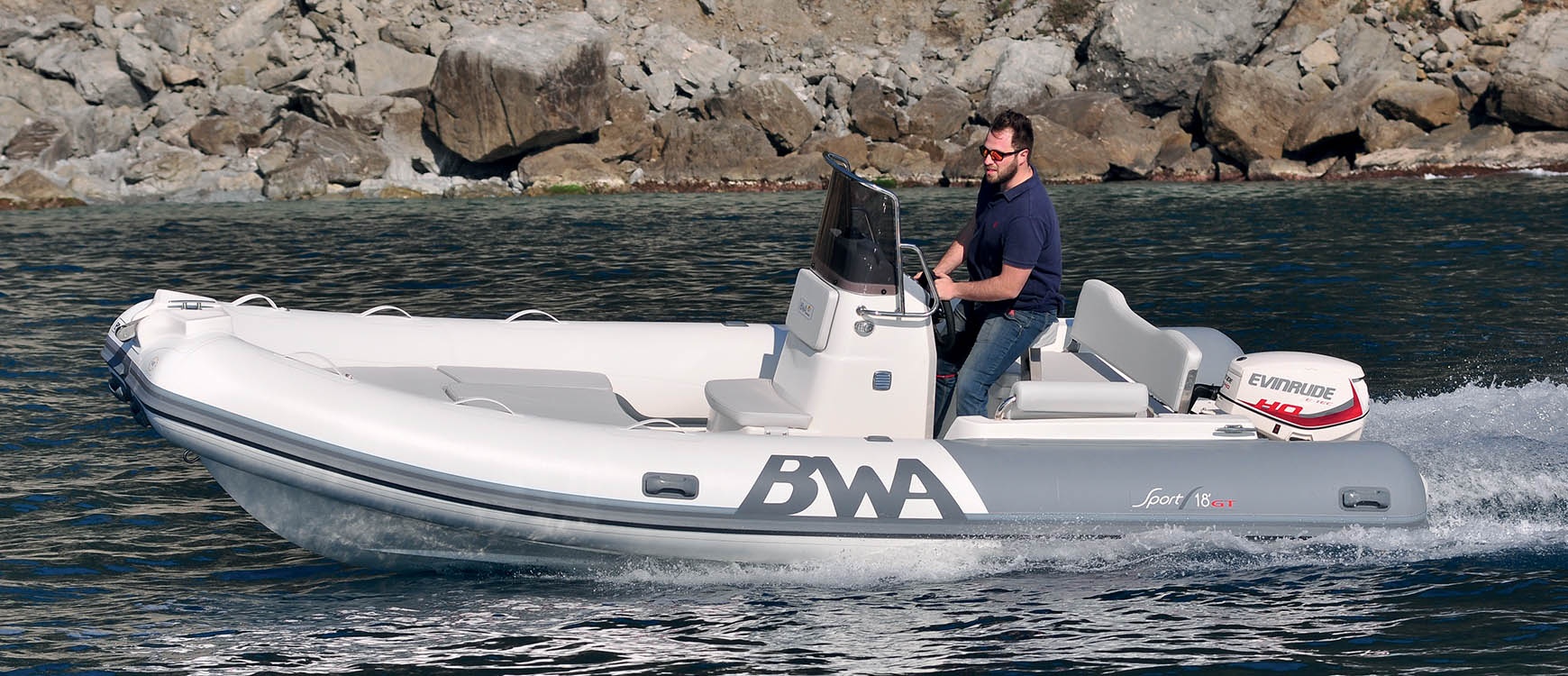 Do standardní výbavy nafukovacího člunu BWA Sport 18' GT patří ovládací konzole, matrace z materiálu Close Cell, tažná a vázací oka, příďová schránka s ležením, elektrický panel, záďové integrované laminátové platformy, bilge pumpa, příďové ležení, záďový žebřík, přední sedadlo na konzoli, opěrné sedadlo, řídící systém.
