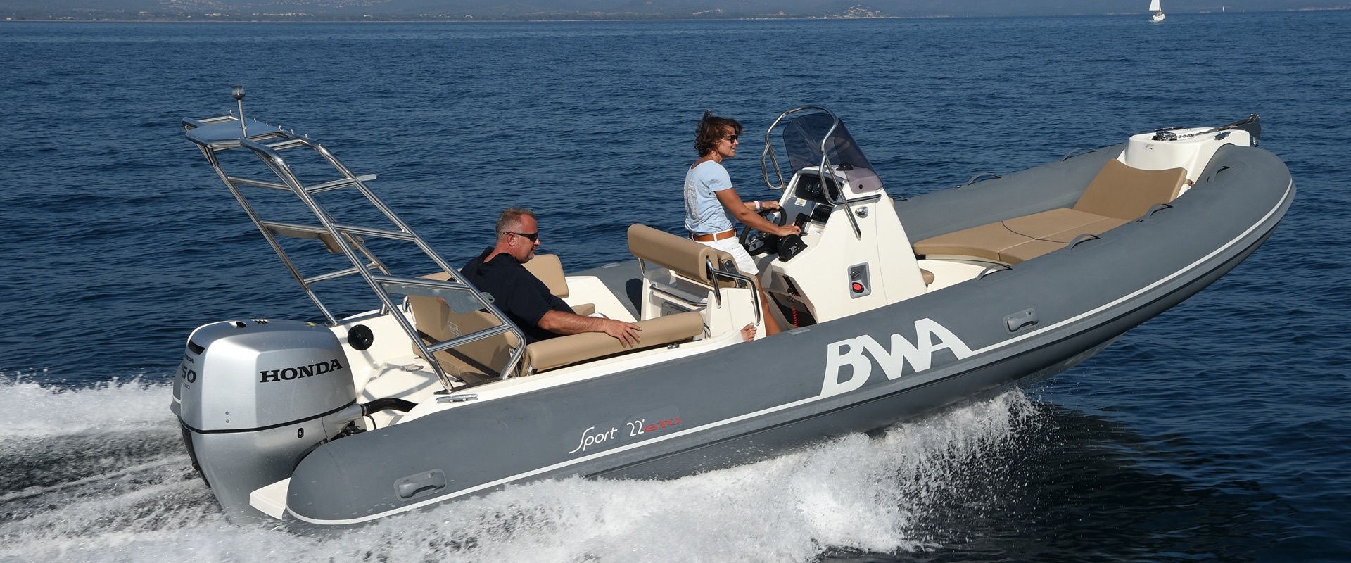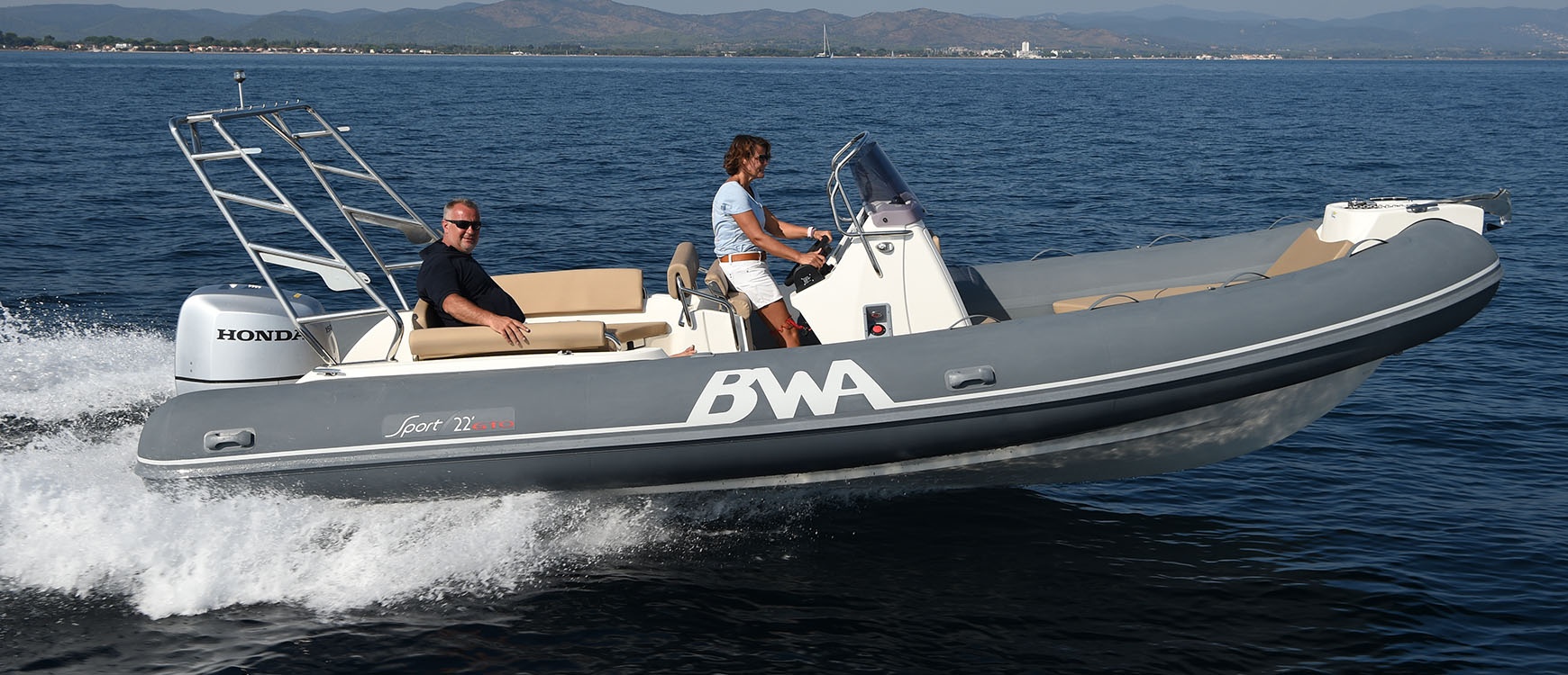 Standardní výbava nafukovacího člunu BWA Sport 22' GTO zahrnuje kompas, konzoli, čalounění, ovládací panel, záďový stolek, příďová schránka s ležením, tažná a vázací oka, sprchový systém, navigační světla, záďové intergrované laminátové platformy, bilge pumpu, elektrický panel, příďové ležení s rozšířením, záďový žebřík, palivovou nádrž 190 L, sedadlo na konzoli, opěrné sedadlo, hydraulické řízení.