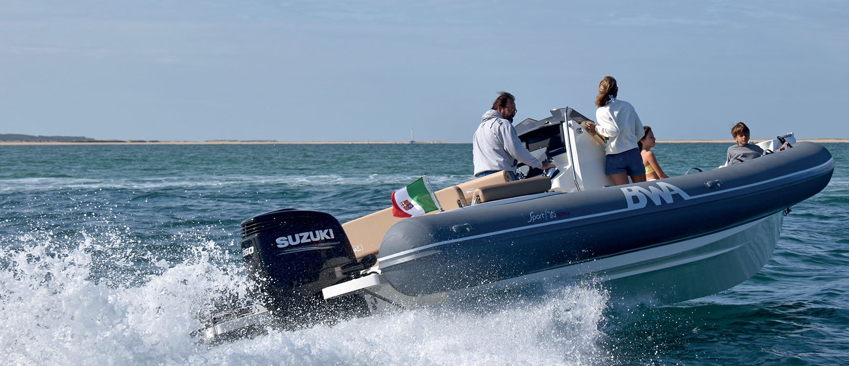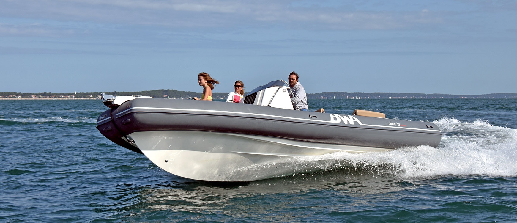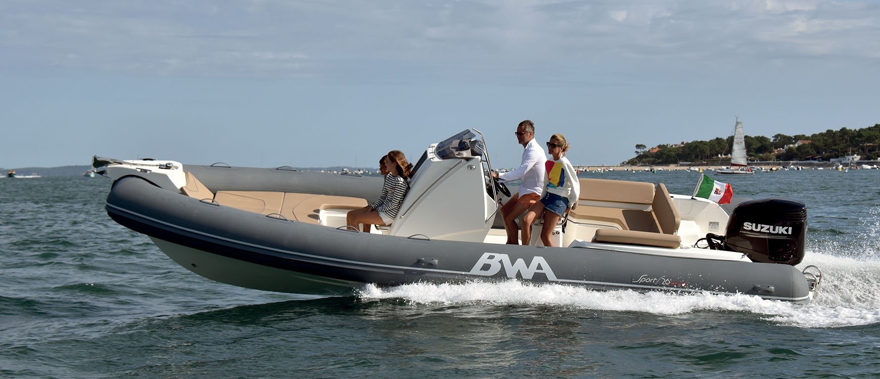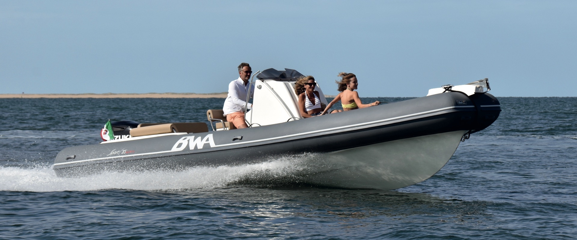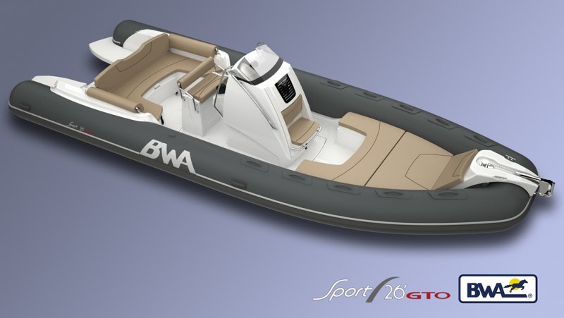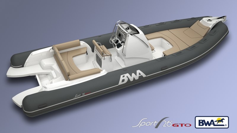 Standardní výbavou nafukovacího člunu BWA Sport 26' GTO je kompas, ovládací konzole, čalounění, záďový stolek, příďová schránka s ležením, tažná a vázací oka, sprchový systém, navigační světla, elektrický kotevní vrátek, zádová laminátová platforma, bilge pumpa, elektrický panel, příďové a záďové ležení s prodloužením, záďový žebřík, palivová nádrž 350 L, přední konzole se sedadlem, opěrné sedadlo, hydraulické řízení.
