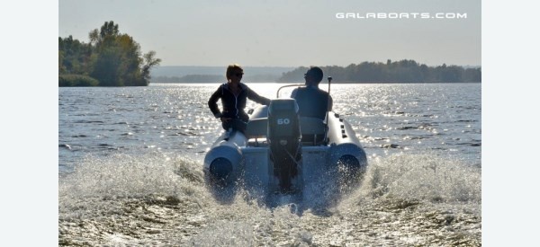 Nafukovací člun GALA Atlantis Deluxe A360L s hliníkovým dnem, nafukovacími tubusy VALMEX, konzolí řízení C-03 a sedačkou S-02