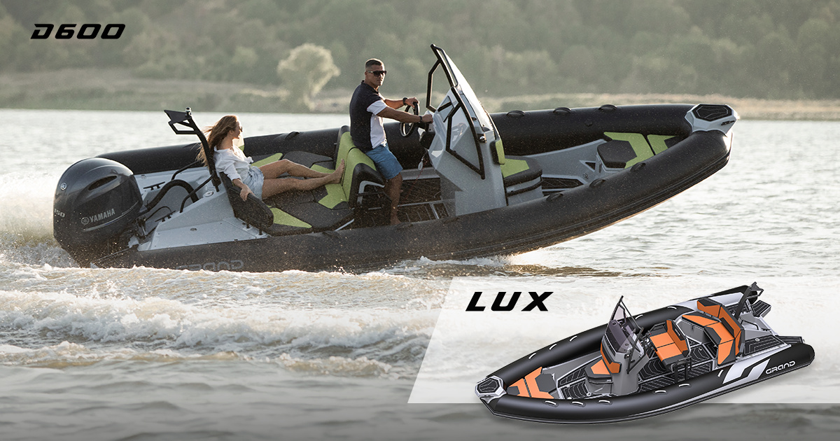 Dynamický a luxusní. Pevný nafukovací člun s délkou 6m/20ft a s motorem až 150HP. Verze Lux modelu D600 je určená pro aktivní, ale zároveň pohodovou plavbu. Dobře vyvážená středová konzole s agilním vysoce výkonným trupem v elegantním obalu. Grand D600L s dlouhým seznamem možností a obrovskými opalovacími plochami nabízí dokonalou kombinaci rekreační plavby se vzrušující rychlostí. Definujte svou vlastní cestu.