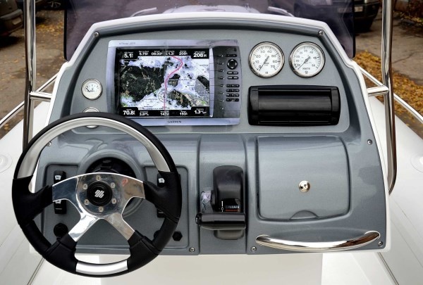 Elegantní kormidelní konzole se sklopnými sedadly a madly,