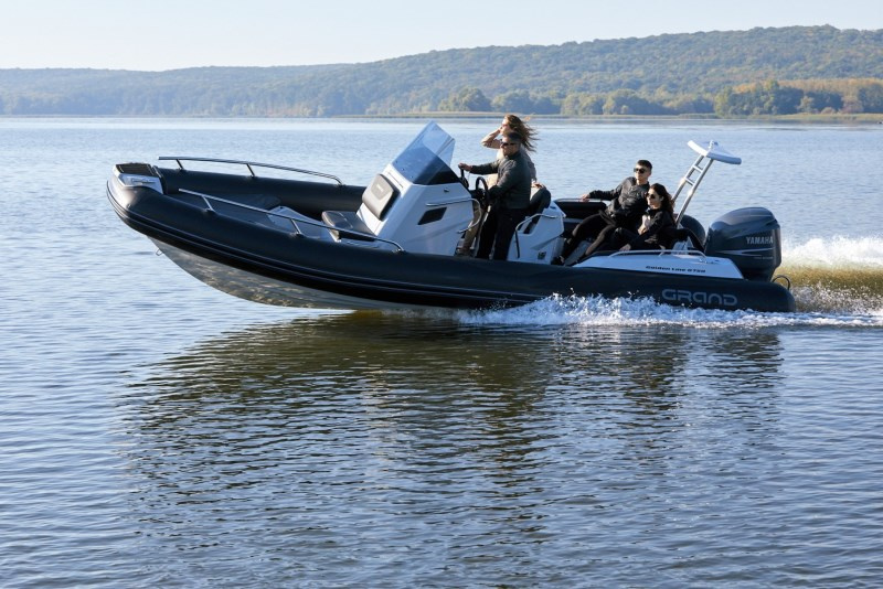 Styl a pohodlí. Moderní velký nafukovací člun (7,3 m/24 ft) s motorem až 250 HP. Esteticky příjemný design a bohatý na možnosti, G750 je velký nafukovací člun se středovou konzolí, s vysoce funkčním a dobře promyšleným uspořádáním. Tato luxusní loď RIB, která překvapuje svým vybavením, lednicí, velkou plochou lehátek a nesčetnými dalšími funkcemi. Grand G750 posouvá pohodlí a celý zážitek na vodě na jinou úroveň. Vydejte se na relaxační a bezstarostnou, plavbu s přáteli a rodinou.