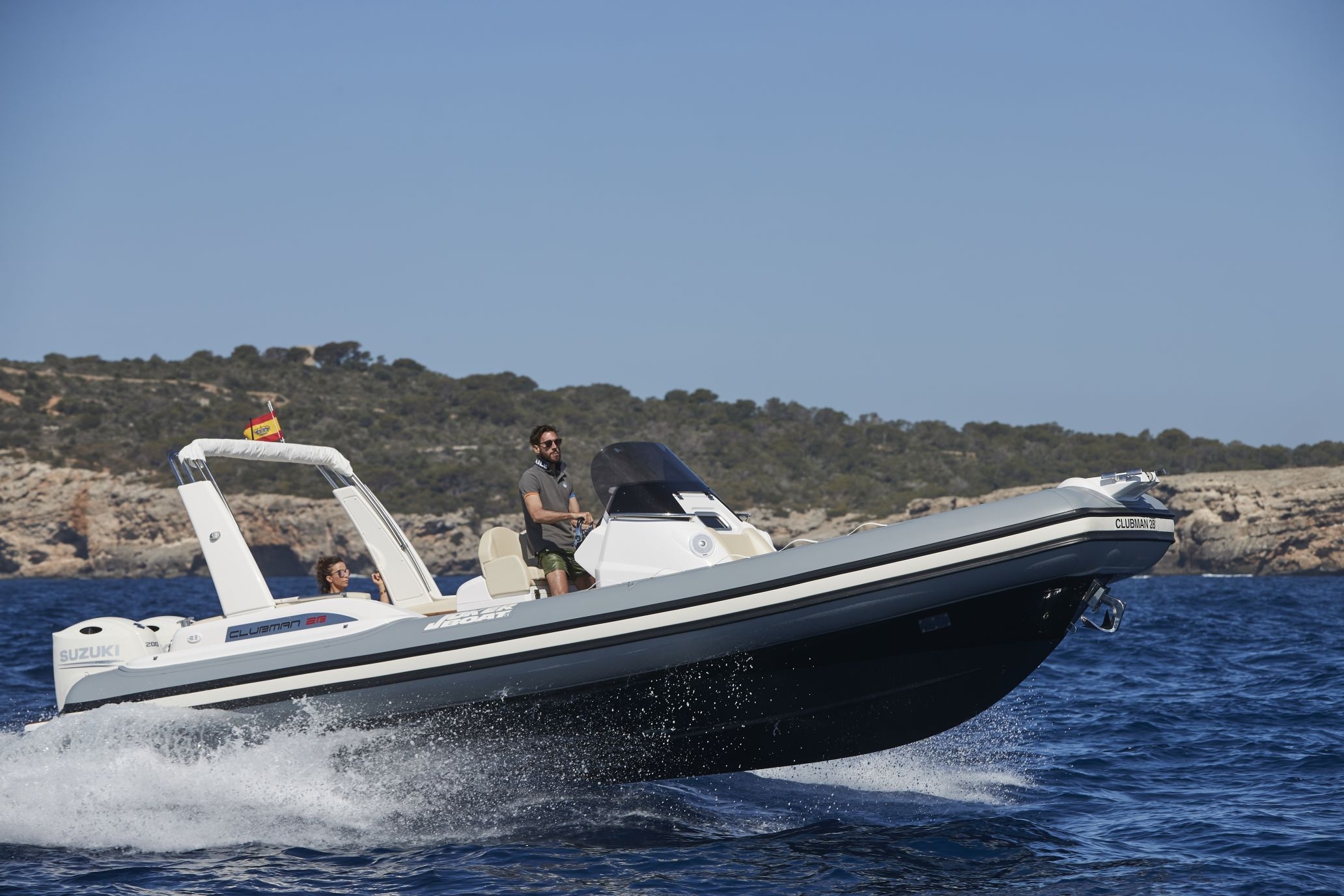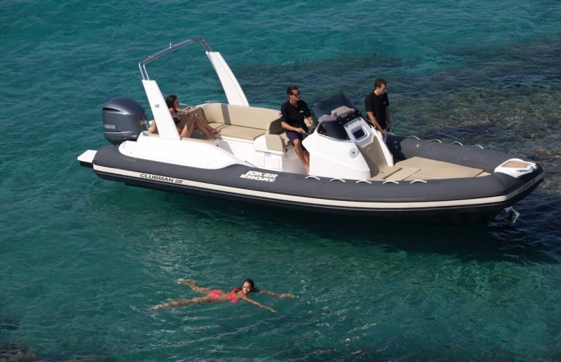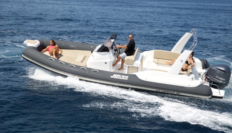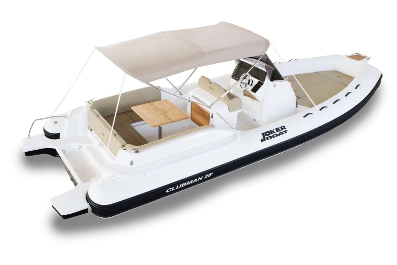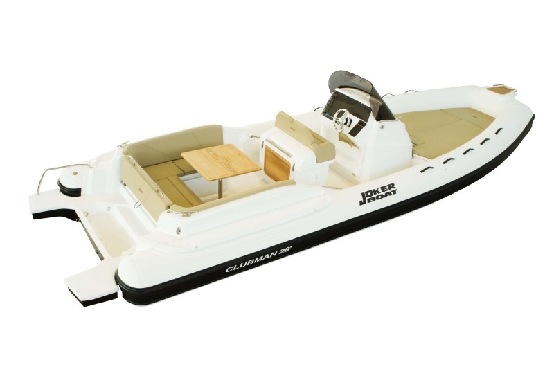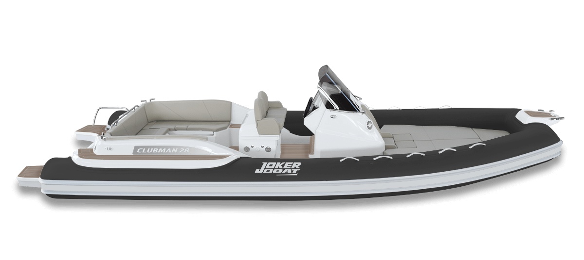 Ve standardní výbavě nafukovacího člunu Joker Clubman 28 naleznete pumpu, 4 reproduktory, konzoli s čelním sklem, nerezové zábradlí, ležení, sedadlo řidiče, lednici 51 L, sprchu, umyvadlo, bilge pumpu, nerezový žebřík, klakson, nádrž na vodu 120 L, palivová nádrž 400 L, stůl s možností ležení, skládací stůl, bimini, hydraulické řízení, elektrický kotevní vrátek s kotvou a řetězem, WC s macerátorem a fekální nádrží.