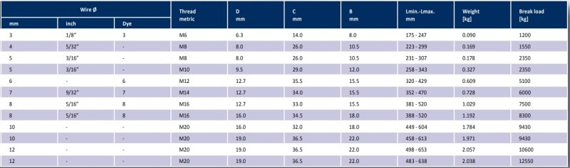 Napínák M8 BSI s terminálem/toggle, lano 5mm