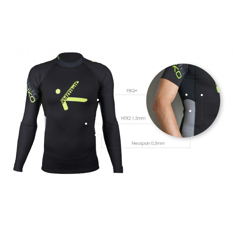- Pouze 0,5 mm tenký a flexibilní Neospan, který je umístěn na pažích a ramenech, umožňuje volný pohyb rukou.