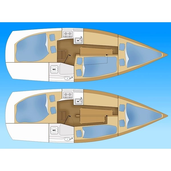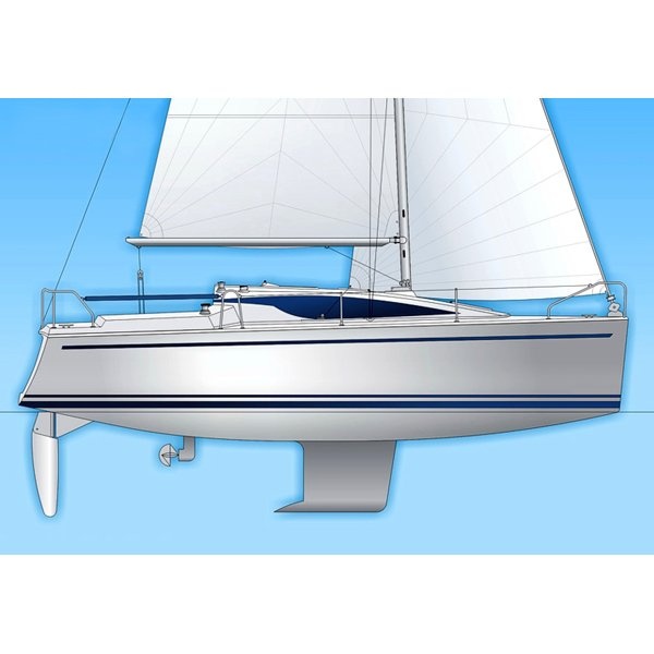 Nejčastěji dodáváme sklopný kýl. S tímto kýlem je možno plachtit i při jeho částečném sklopení. Sklápění kýlu nemá vliv na stabilitu lodě.