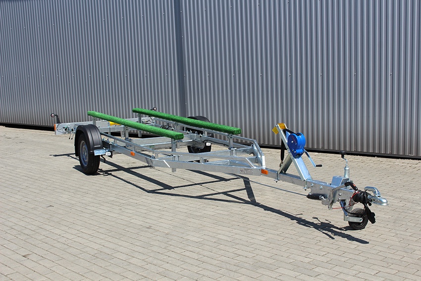 Součástí přívěsu jsou:- Manipulační kolečko připevněné třmeny.- Dvě stavitelné ližiny.- Kýlové válečky.- Výsuvná, odjimatelná zadní rampa s LED světly.- Nastavitelné nápravy.