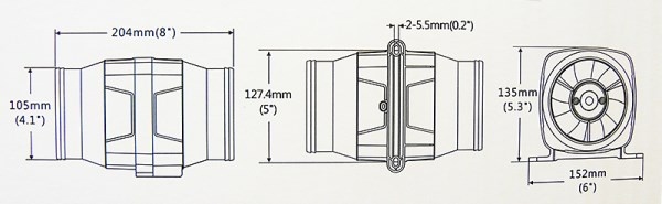 204 x 127,4 x 135 mm